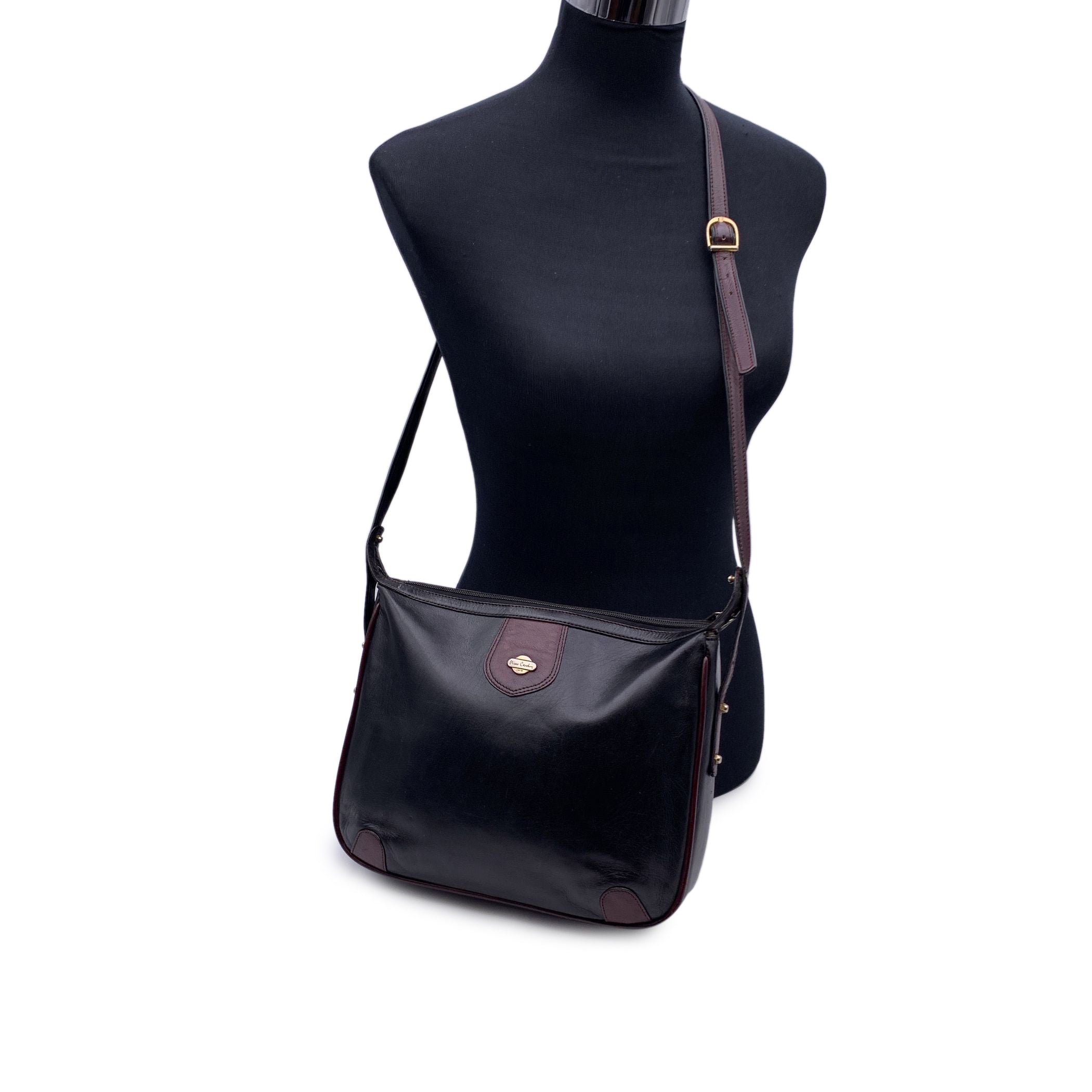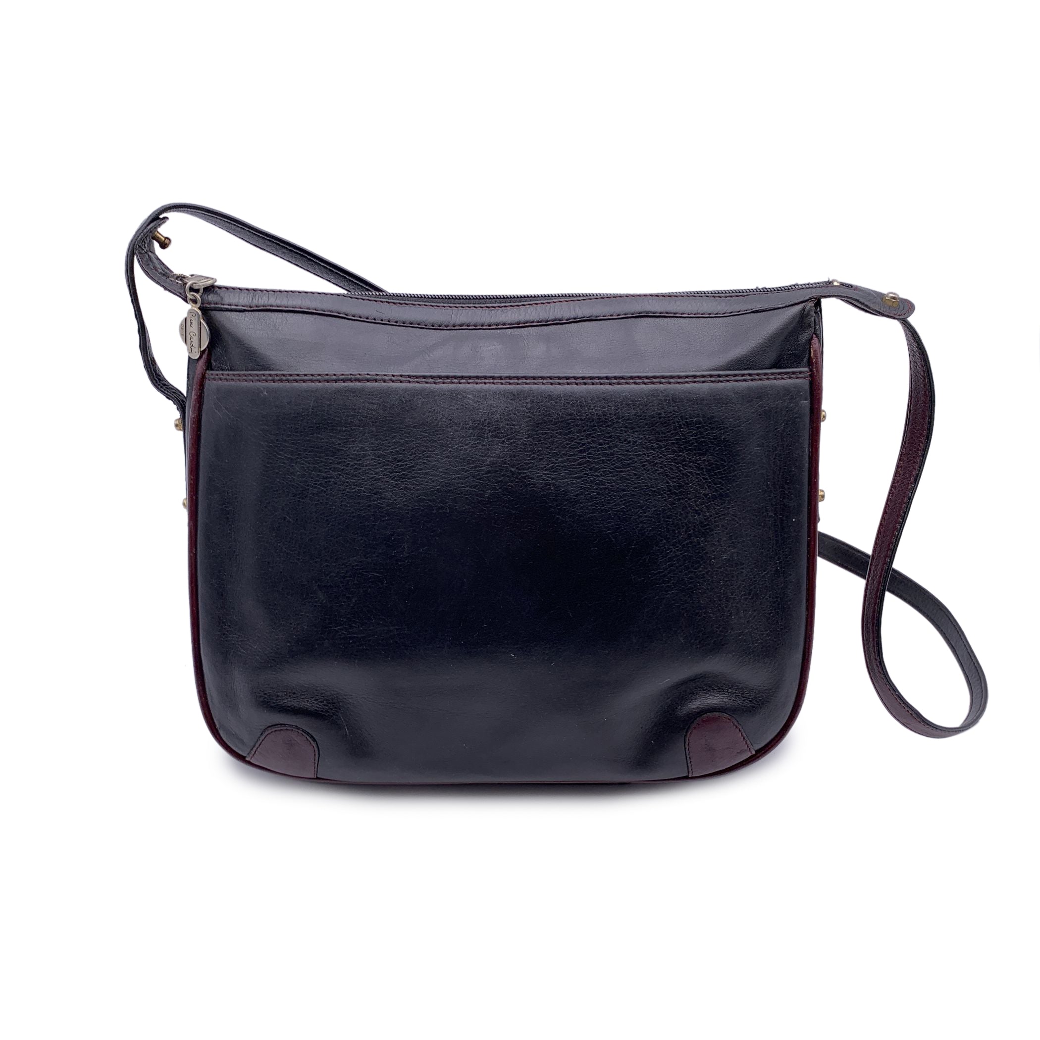 Pierre Cardin Vintage Shoulder Bag In Black Leather With Burgundy Leather Trim. The Bag Features Adjustable Shoulder Strap, 1 Side Zip Pocket Inside And Top Zip Closure. 1 Rear Open Pockets. Pierre Cardin Tag Inside.