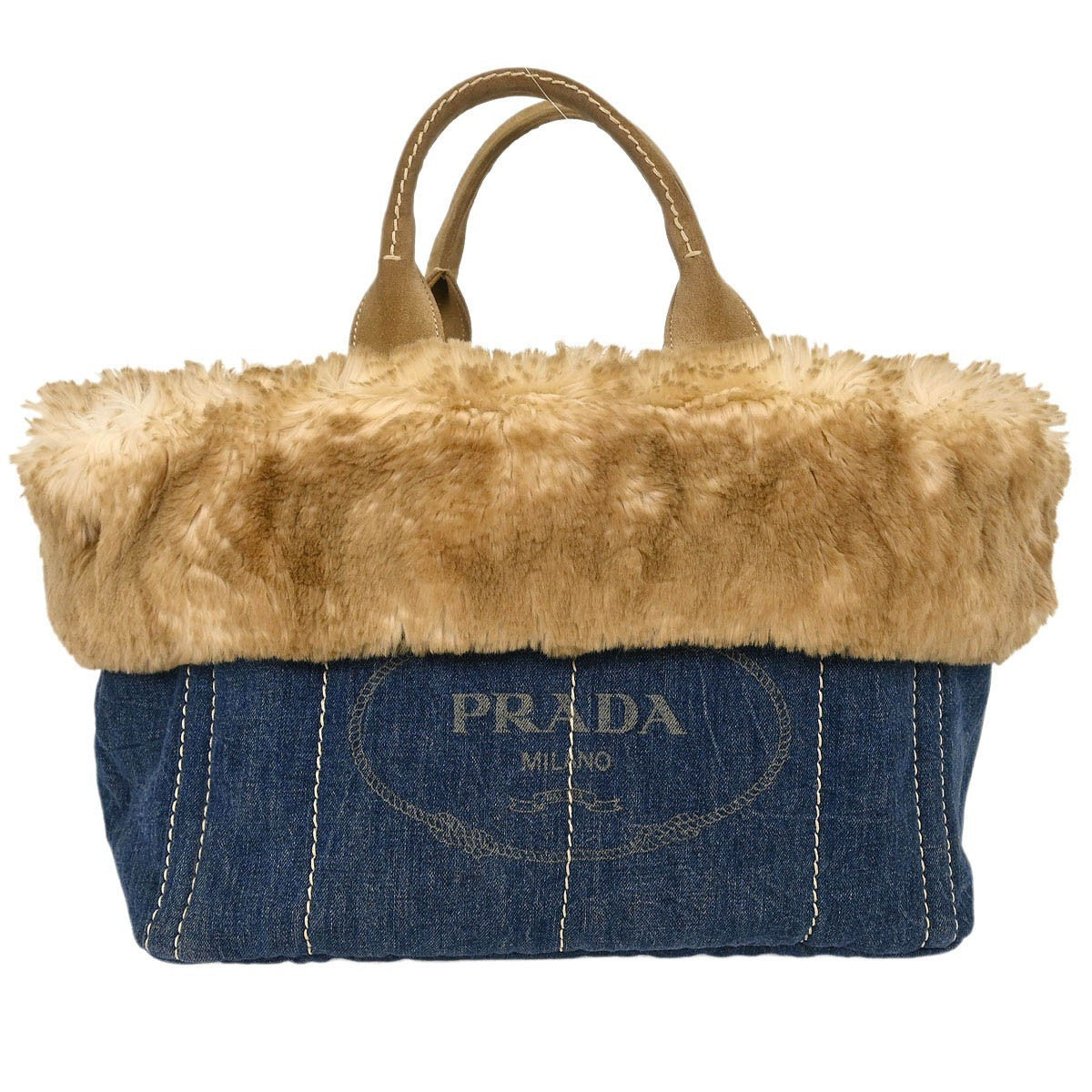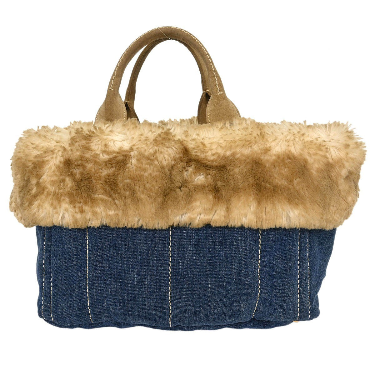 Brand : Prada Model : Canapa Tote Style : Denim and Fur Serial number : 158 NR.BN2182 Inclusions : Authenticity Card,Care Manual