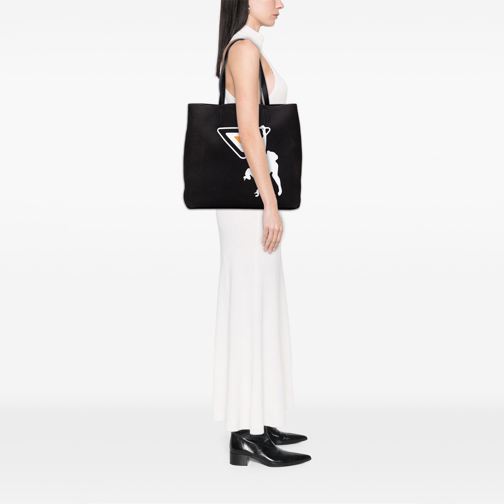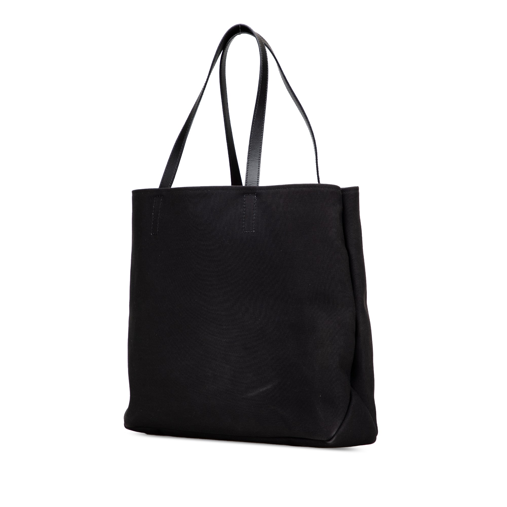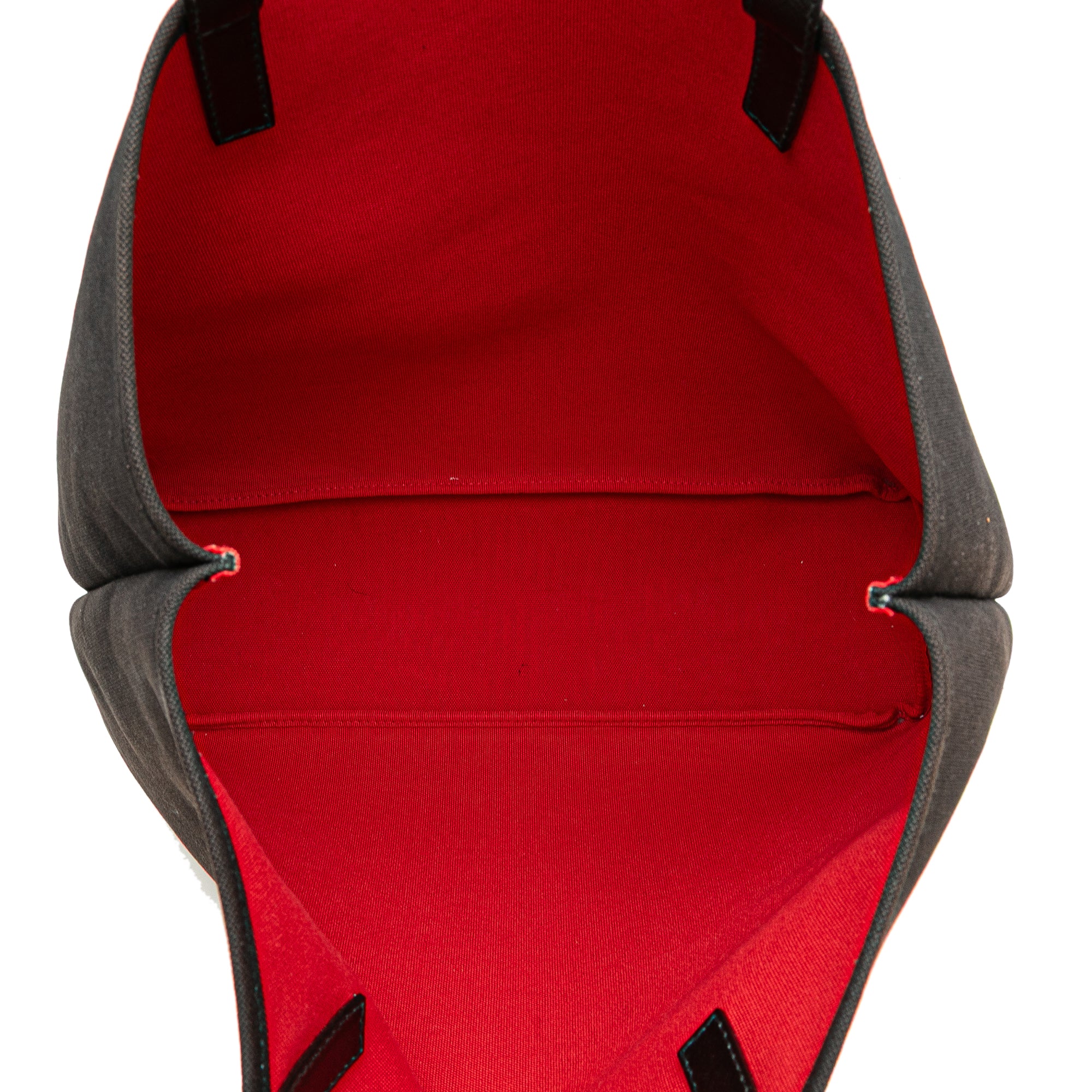 This tote bag features a canvas body, flat leather straps, an open top, and a zip pouch inclusion. Retail Price: 950.00