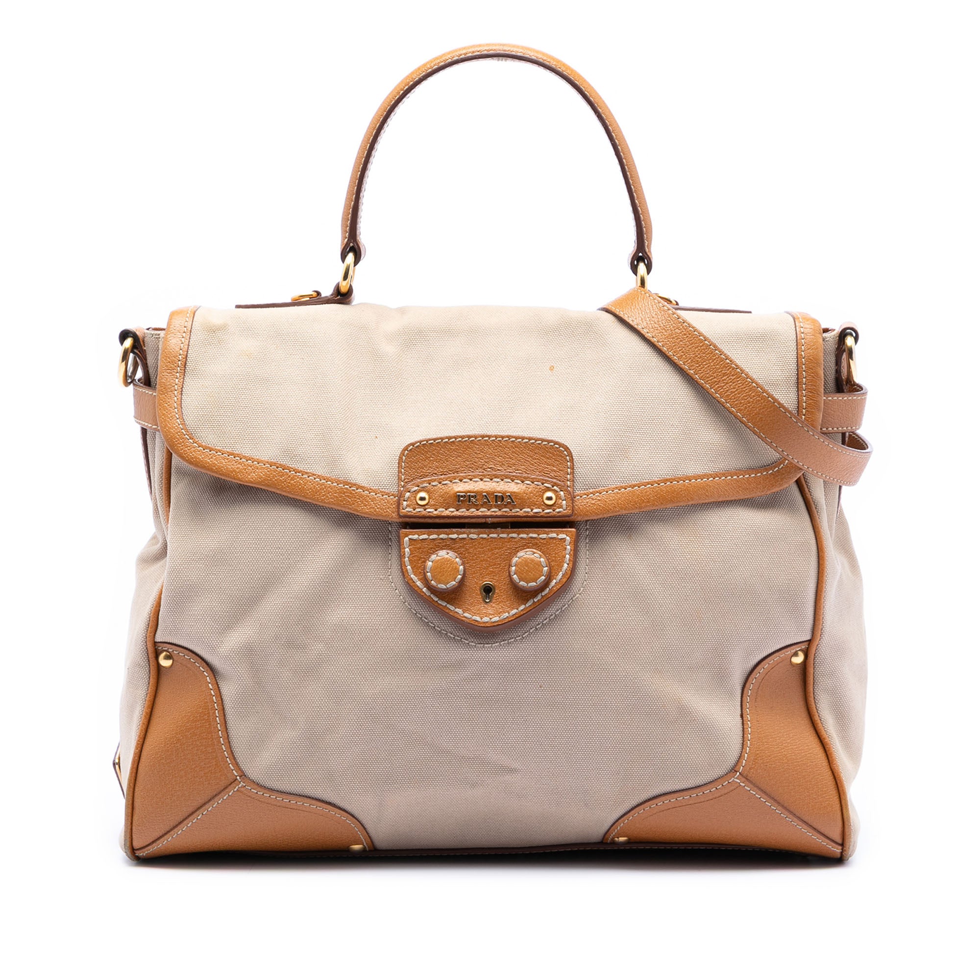 Prada Cinghiale Trimmed Canapa Top Handle Bag