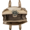 Add a touch of avant-garde elegance to your daily look with the Prada Crystal Embellished PVC Canvas Frame Bag. The frame top is adorned with resin-crystals that sway and shimmer with movement. The glossy PVC exterior is perfect for storing your belongings, while the spacious beige canvas interior can hold all your daily essentials.