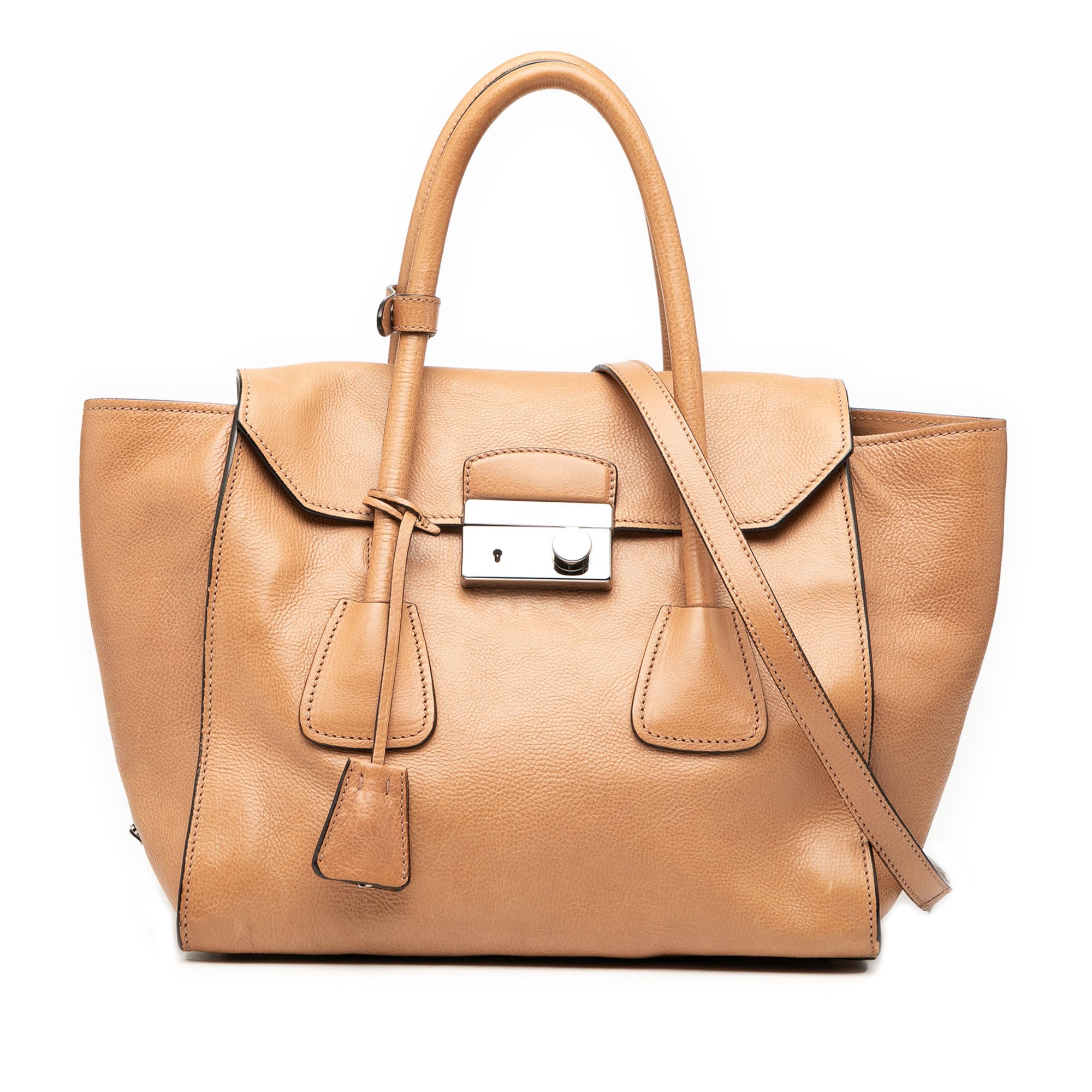 This satchel features a leather body, rolled leather handles, a detachable flat leather strap, a flap with a push lock closure, and interior zip and slip pockets. Inclusion: authenticity card. Retail Price: 2300.00