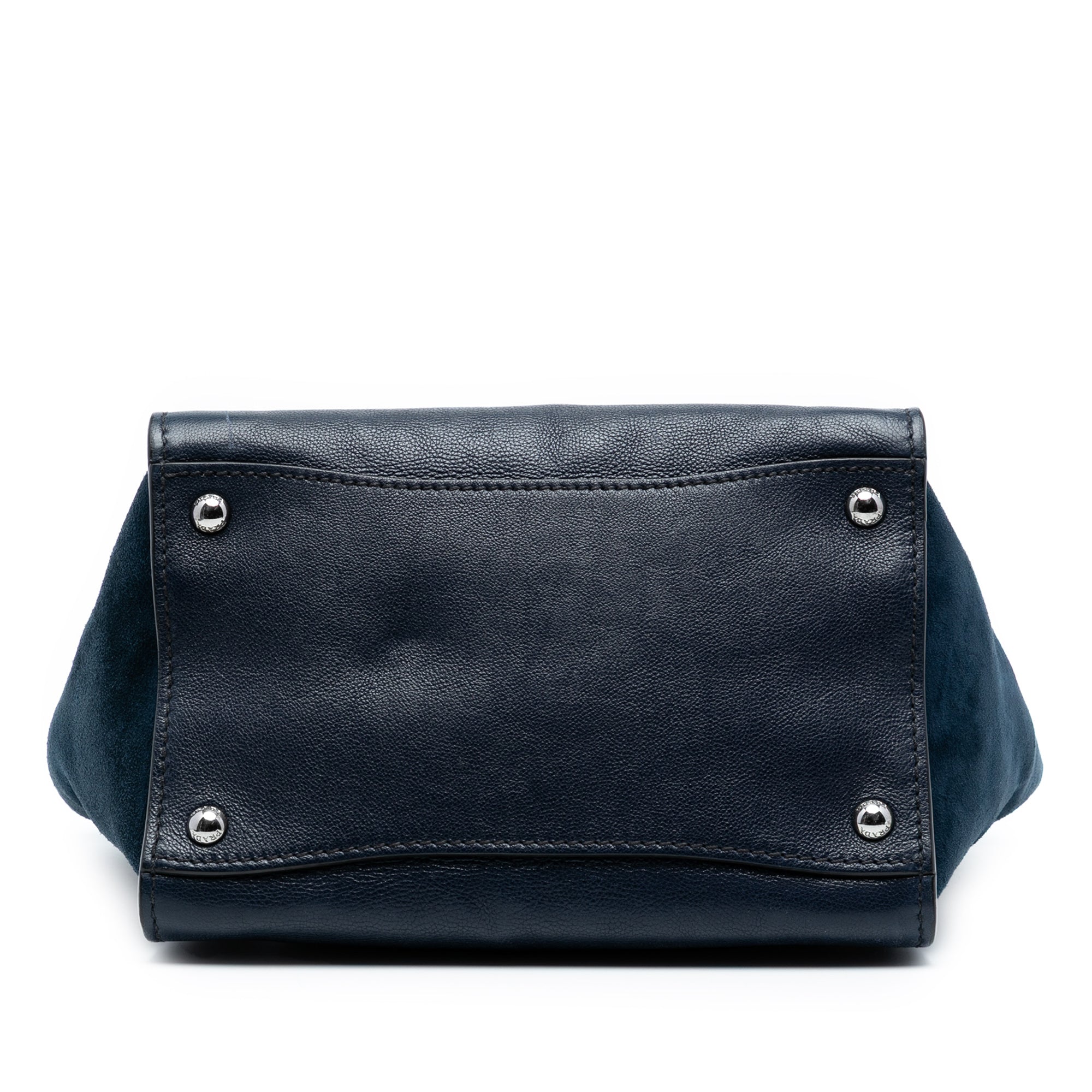 This satchel features a leather body, rolled leather handles, a detachable flat leather strap, an open top, top zip compartments, and interior zip and slip pockets. Retail Price: 1345.00