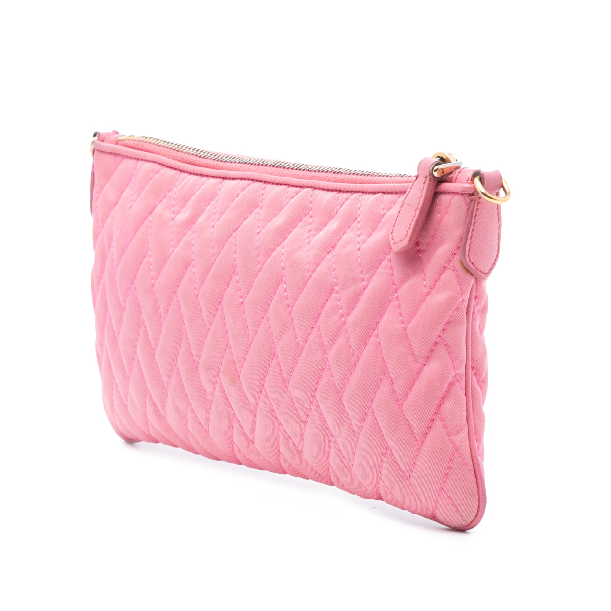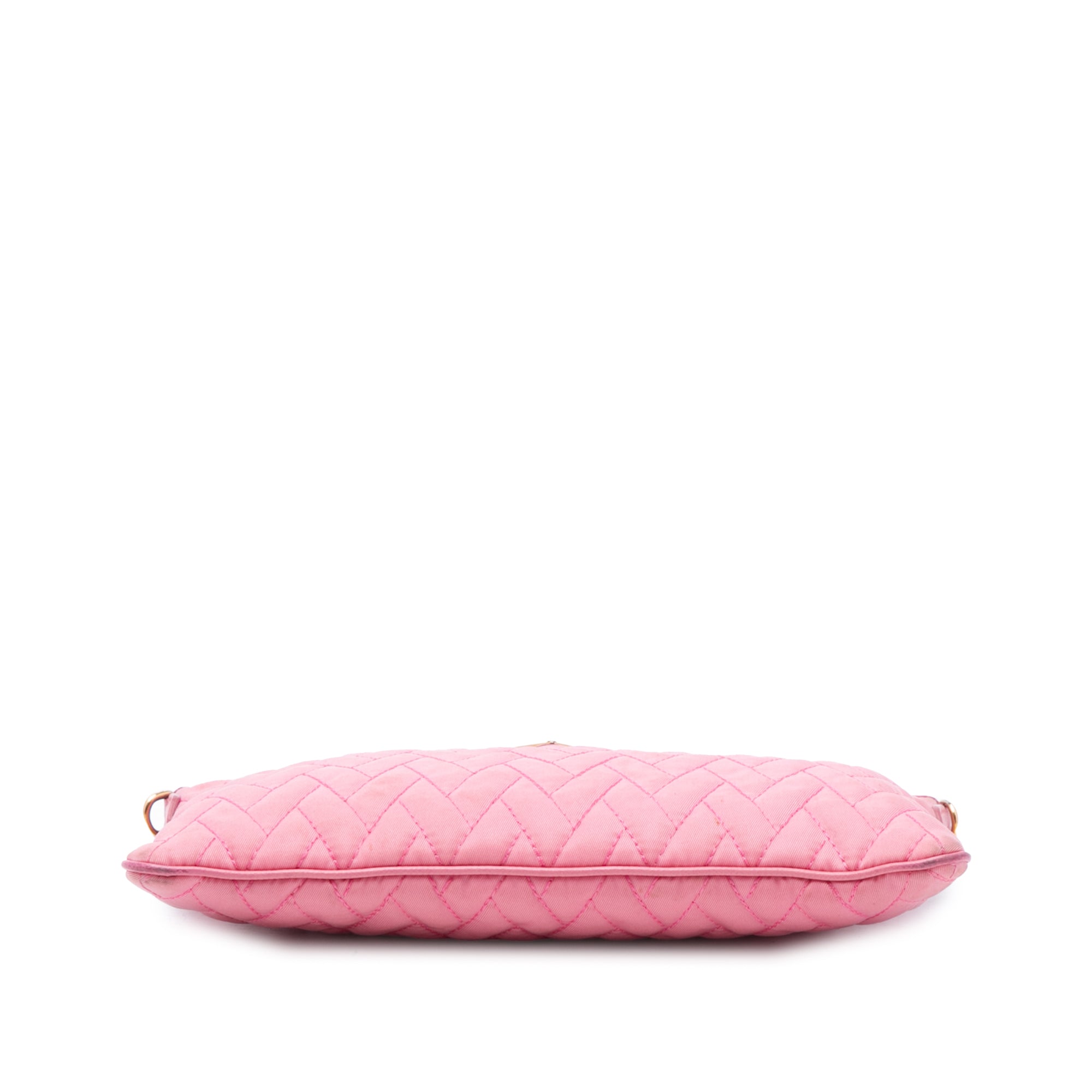 This crossbody bag features a quilted nylon body, a nylon-woven chain shoulder strap, and a top zip closure. Inclusion: box, authenticity card. Retail Price: 1220.00
