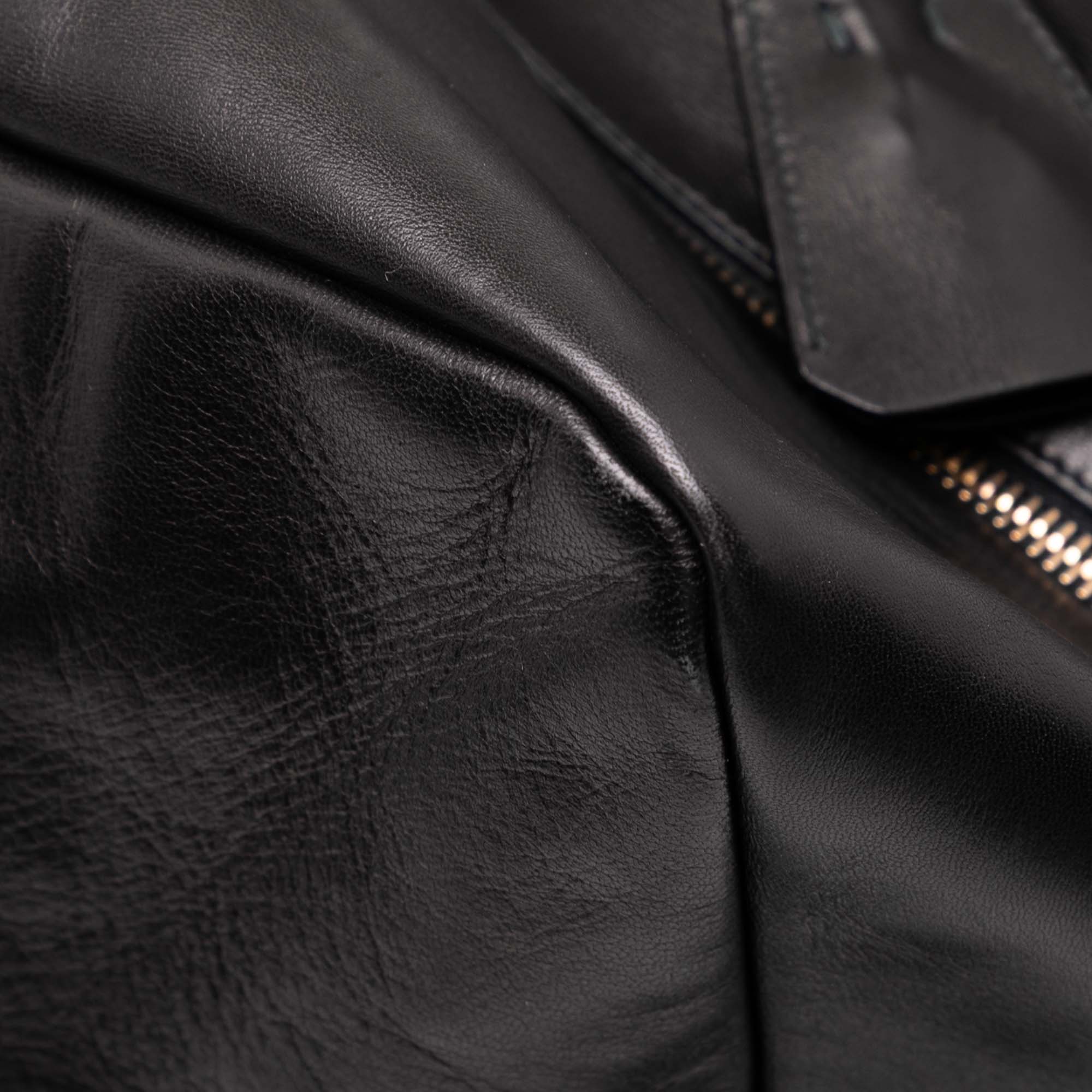 This boston bag features a leather body, top rolled leather handles, a top zip closure, and an interior zip pocket. Retail Price: 1890.00