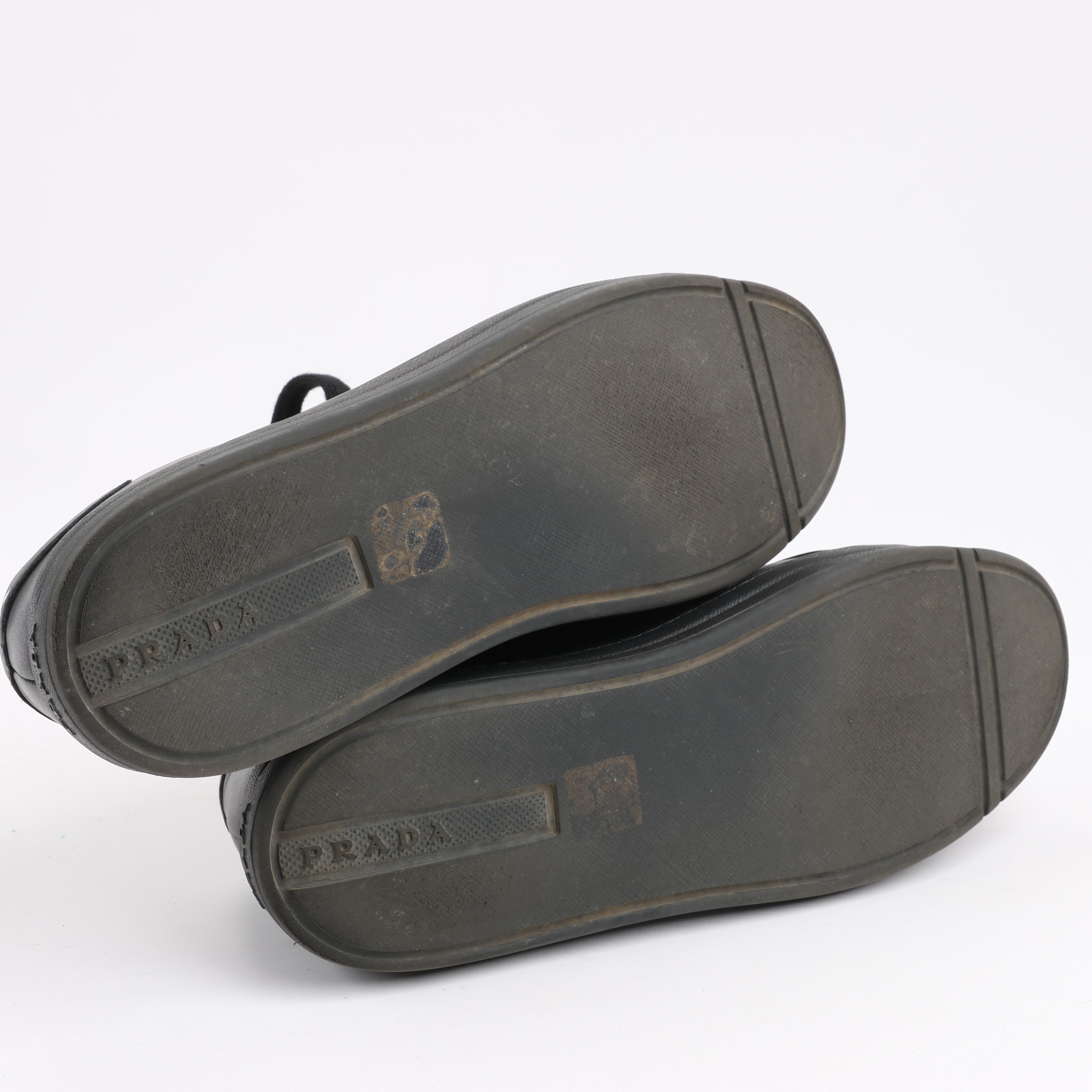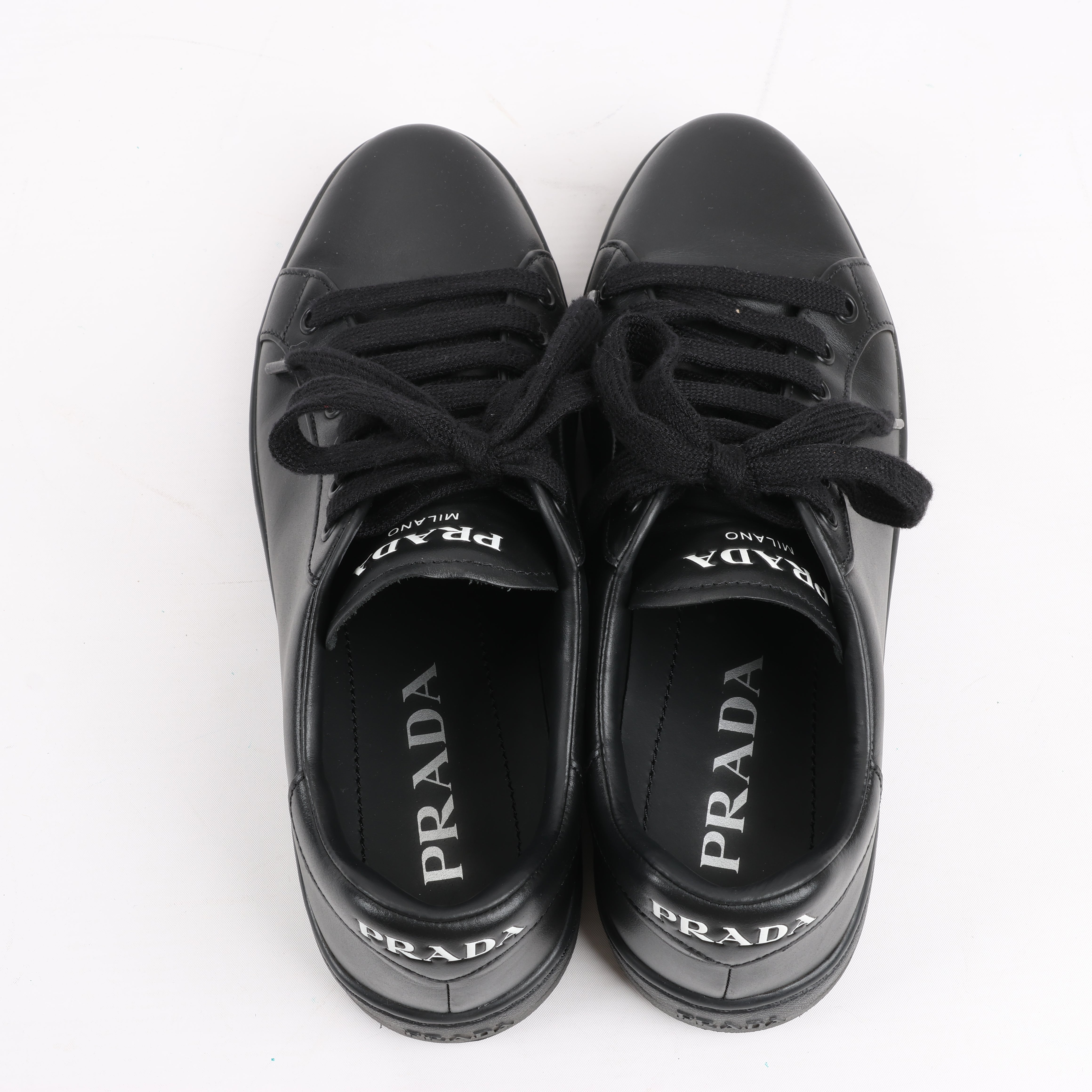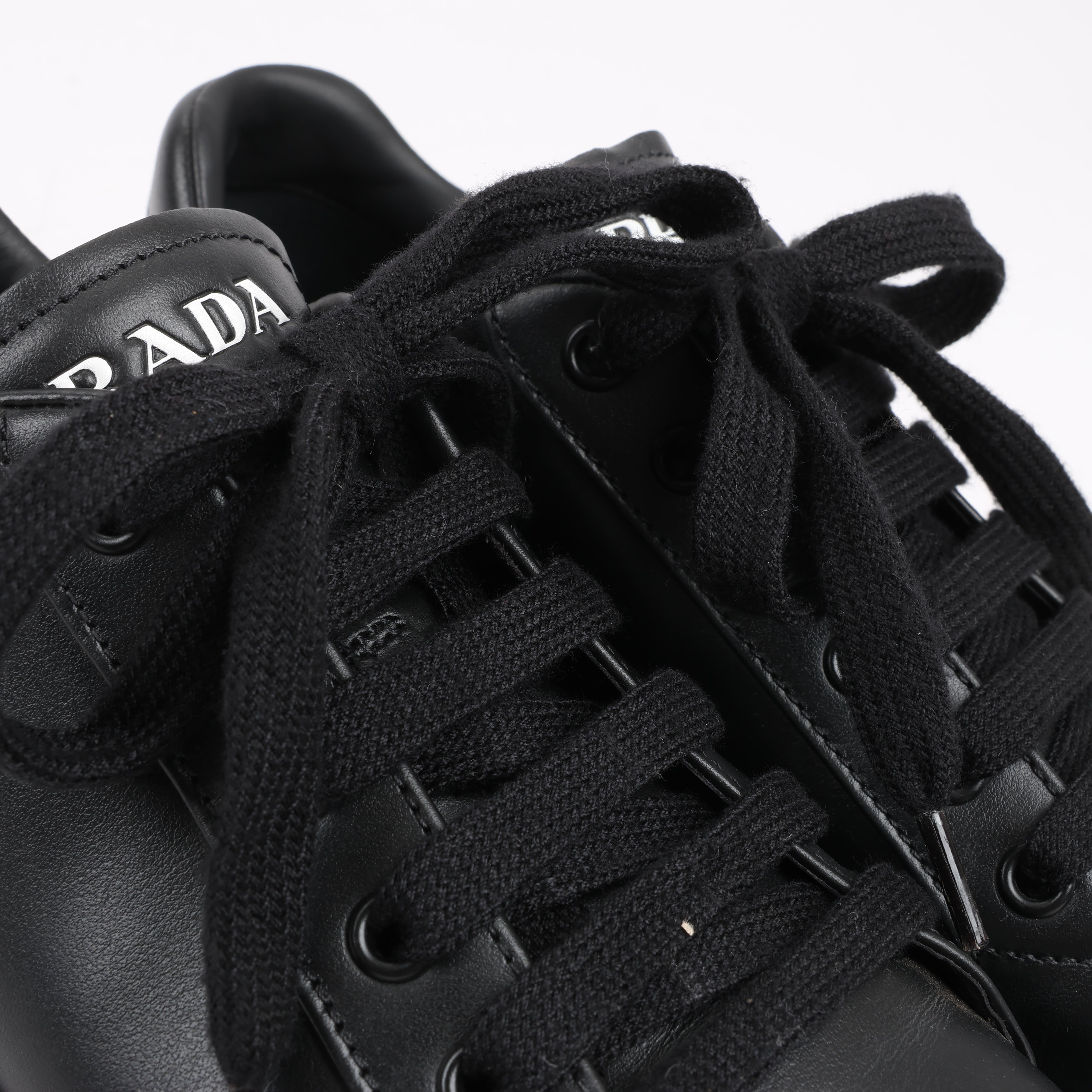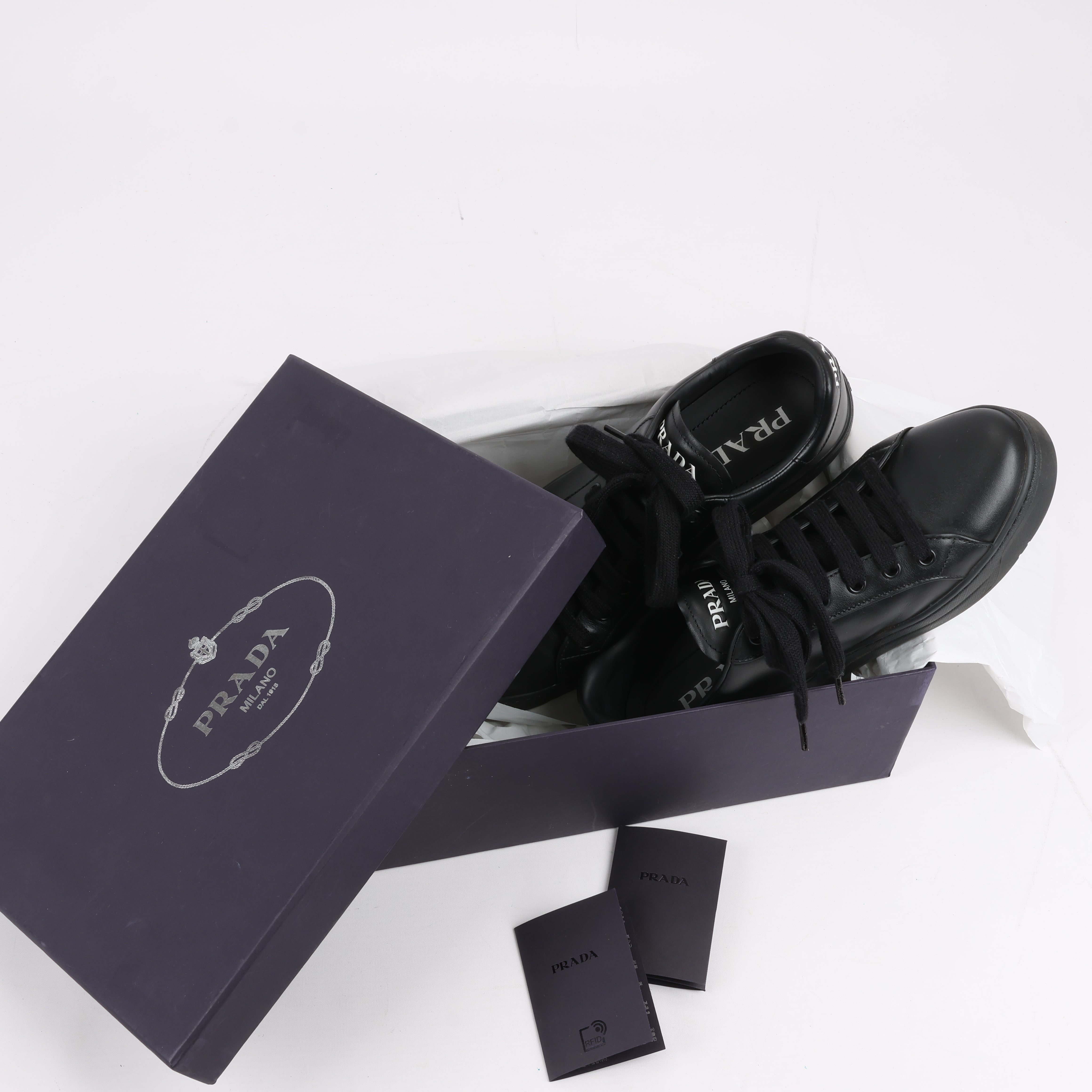 PRADA Logo Leather Sneakers in Black × White 1E282N, Size 37.5 EU