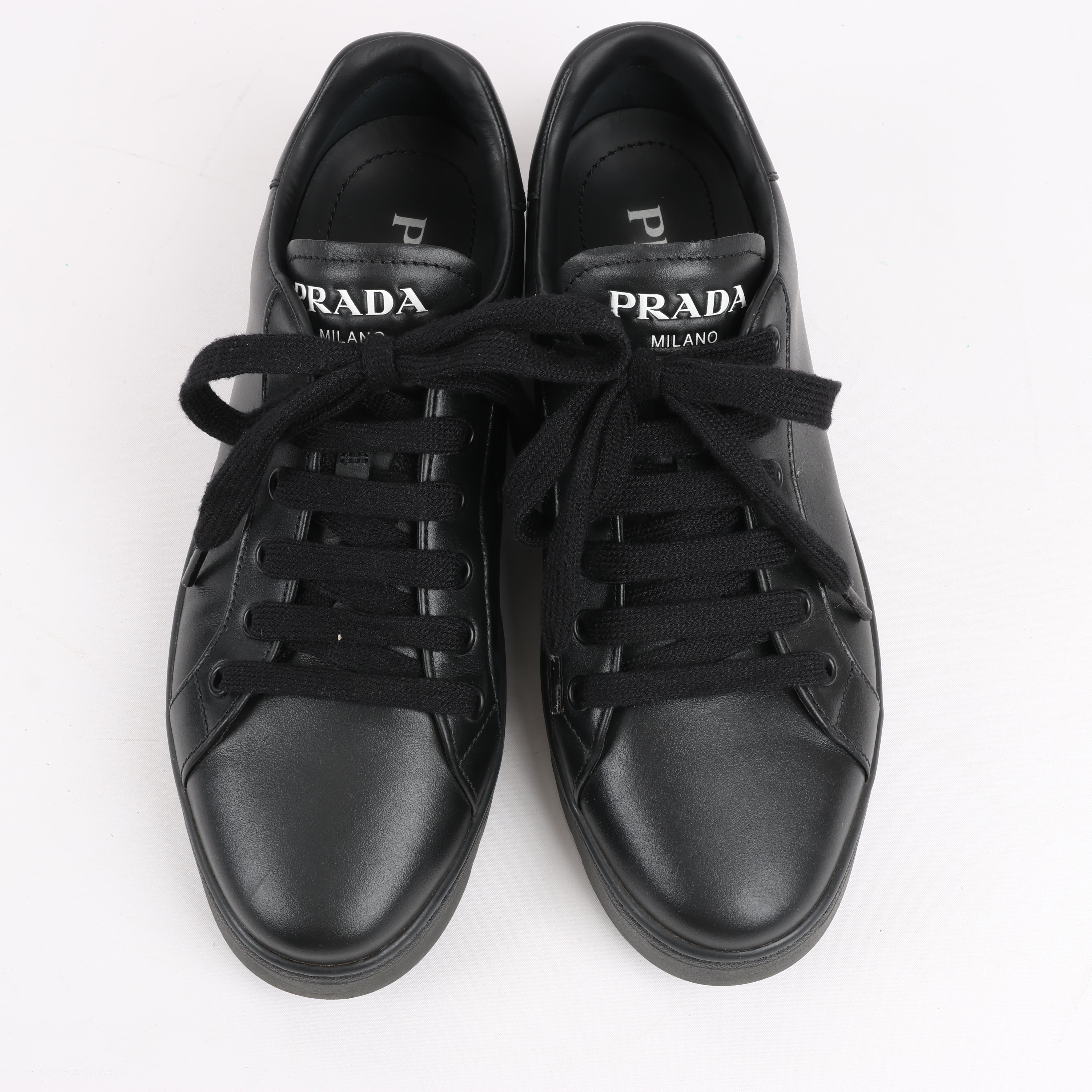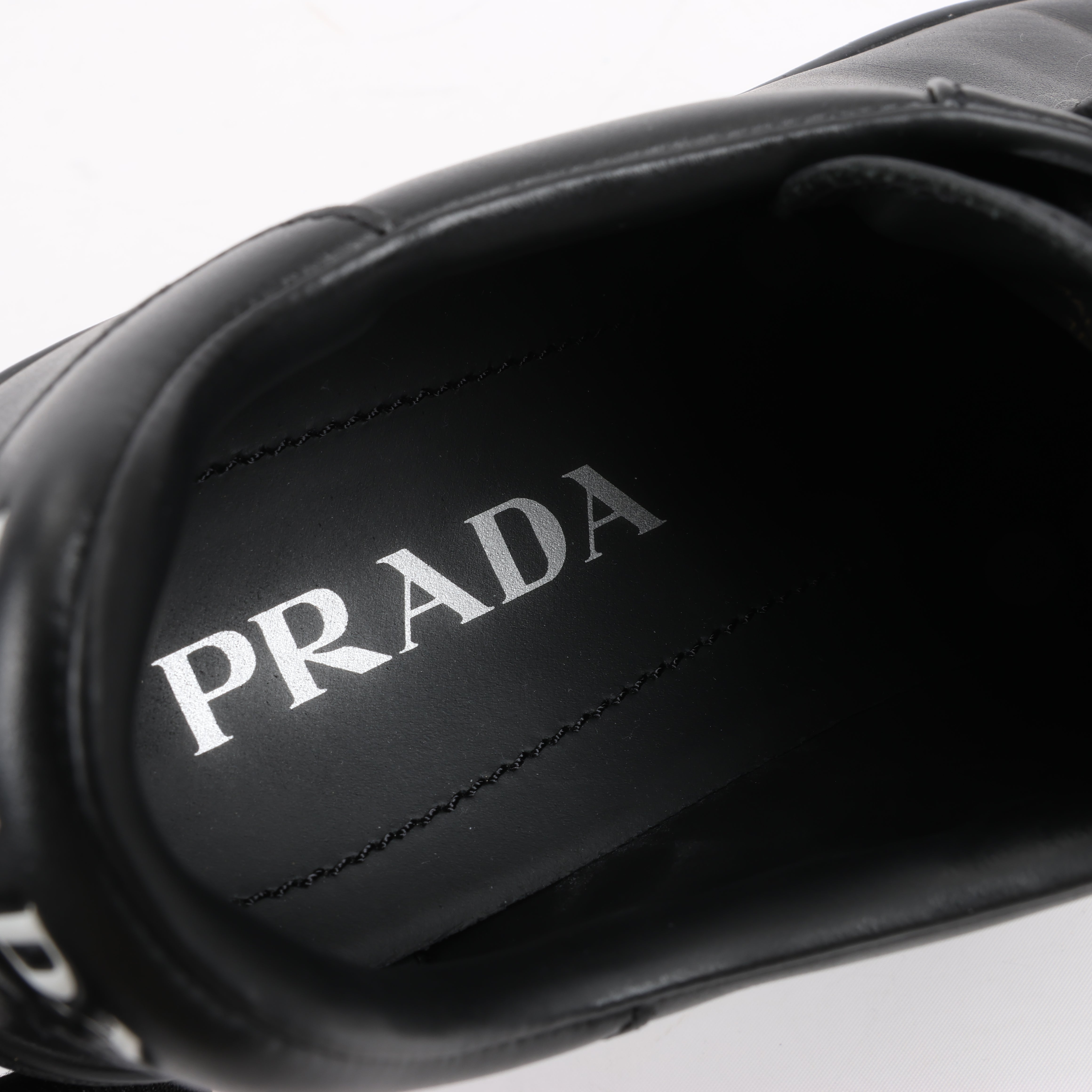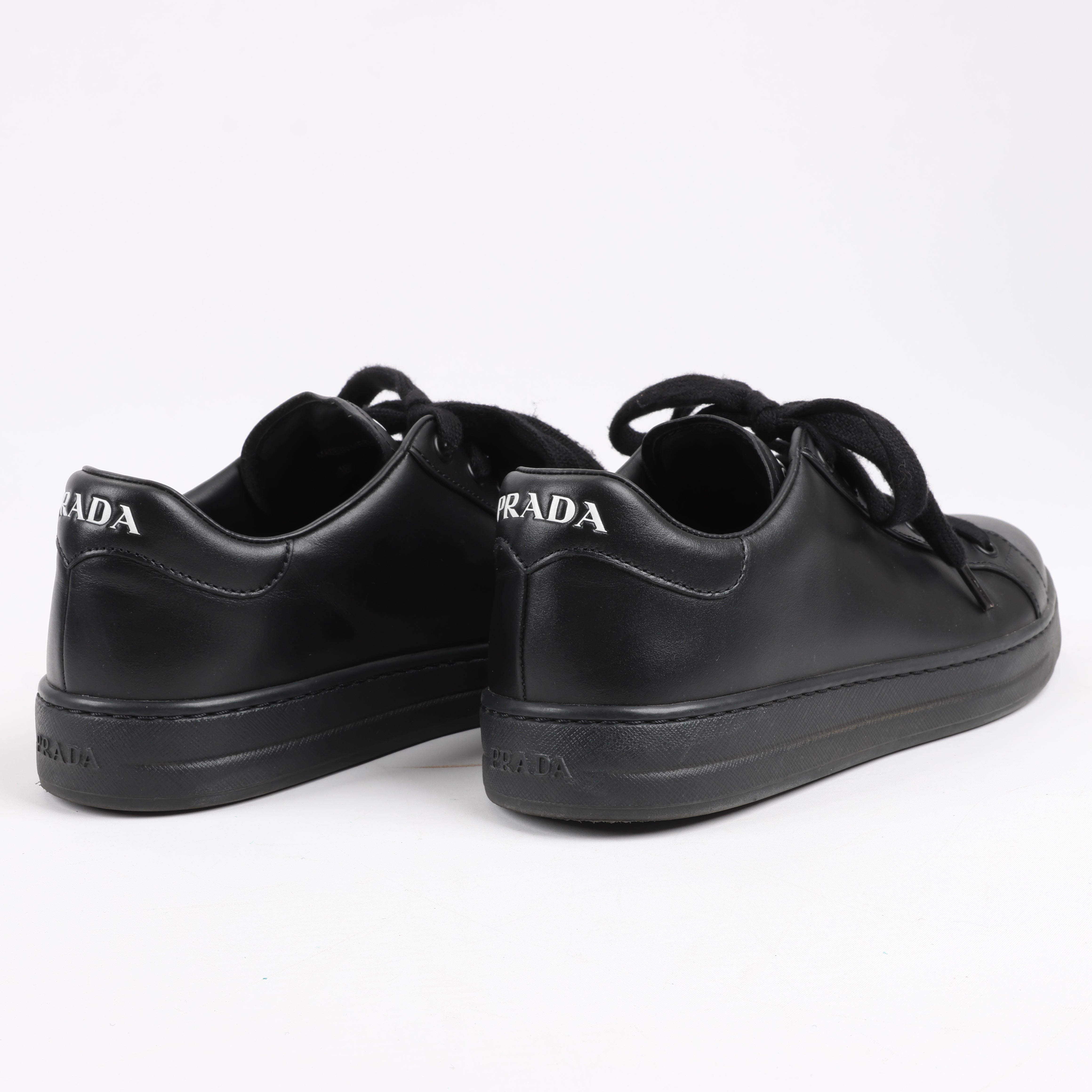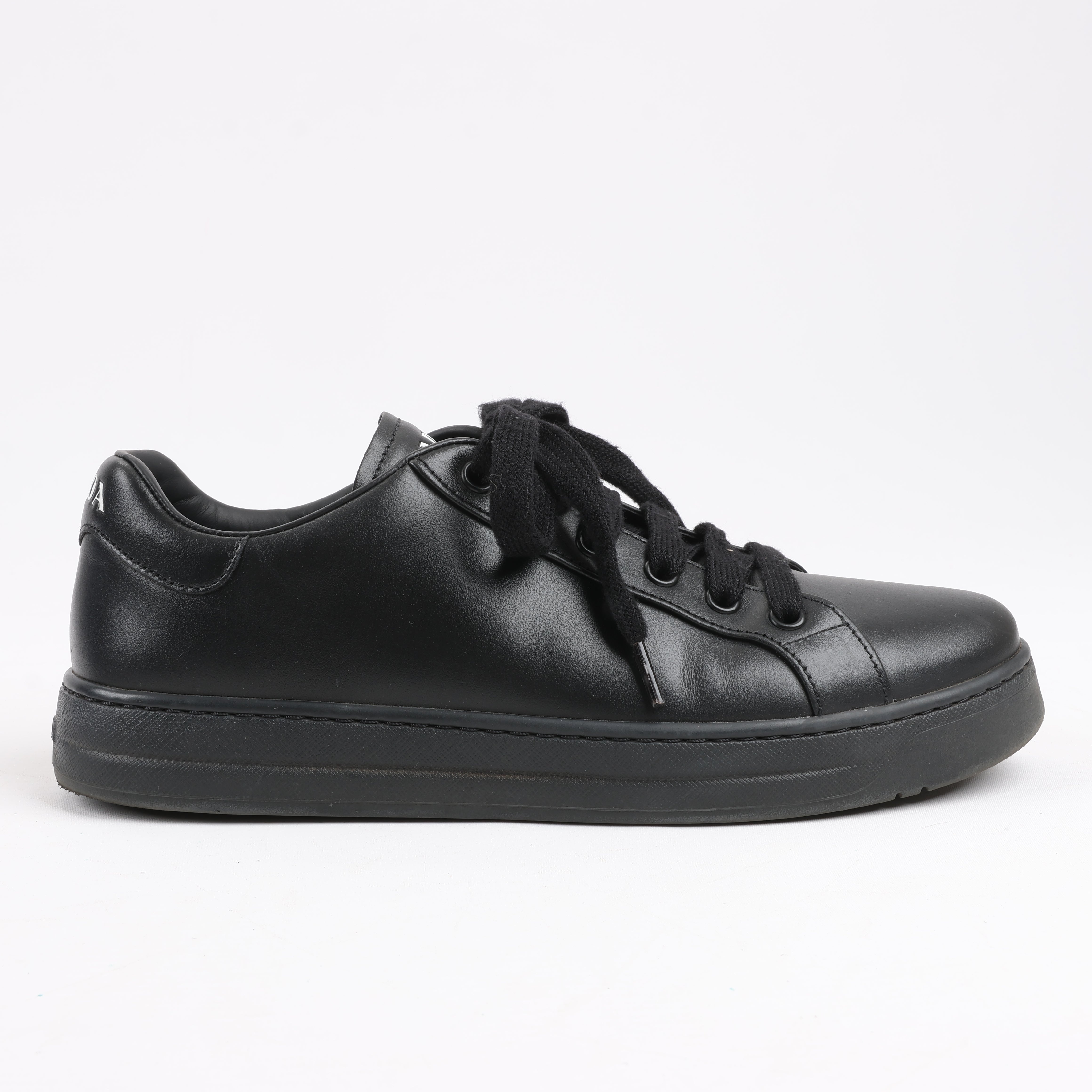 PRADA Logo Leather Sneakers in Black × White 1E282N, Size 37.5 EU