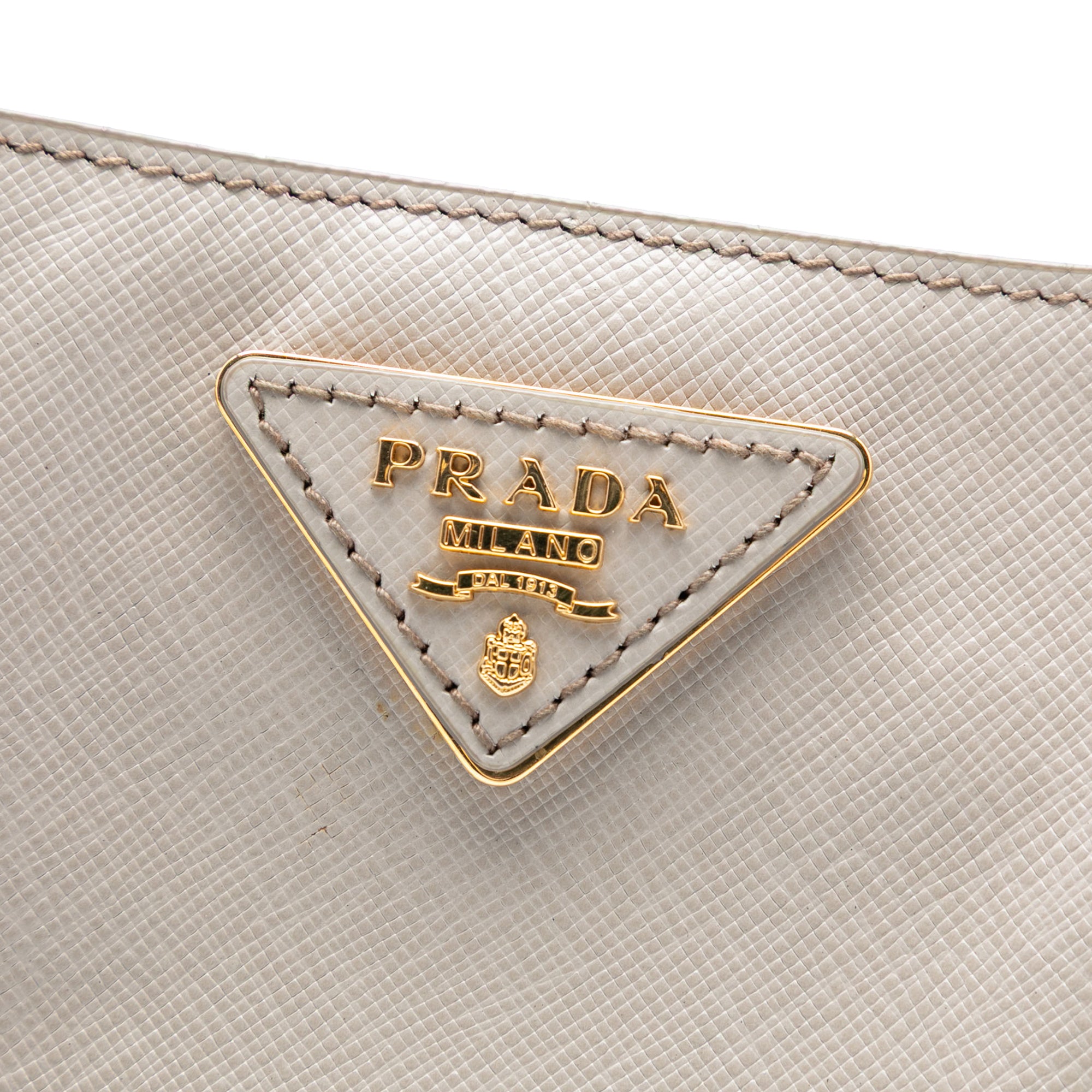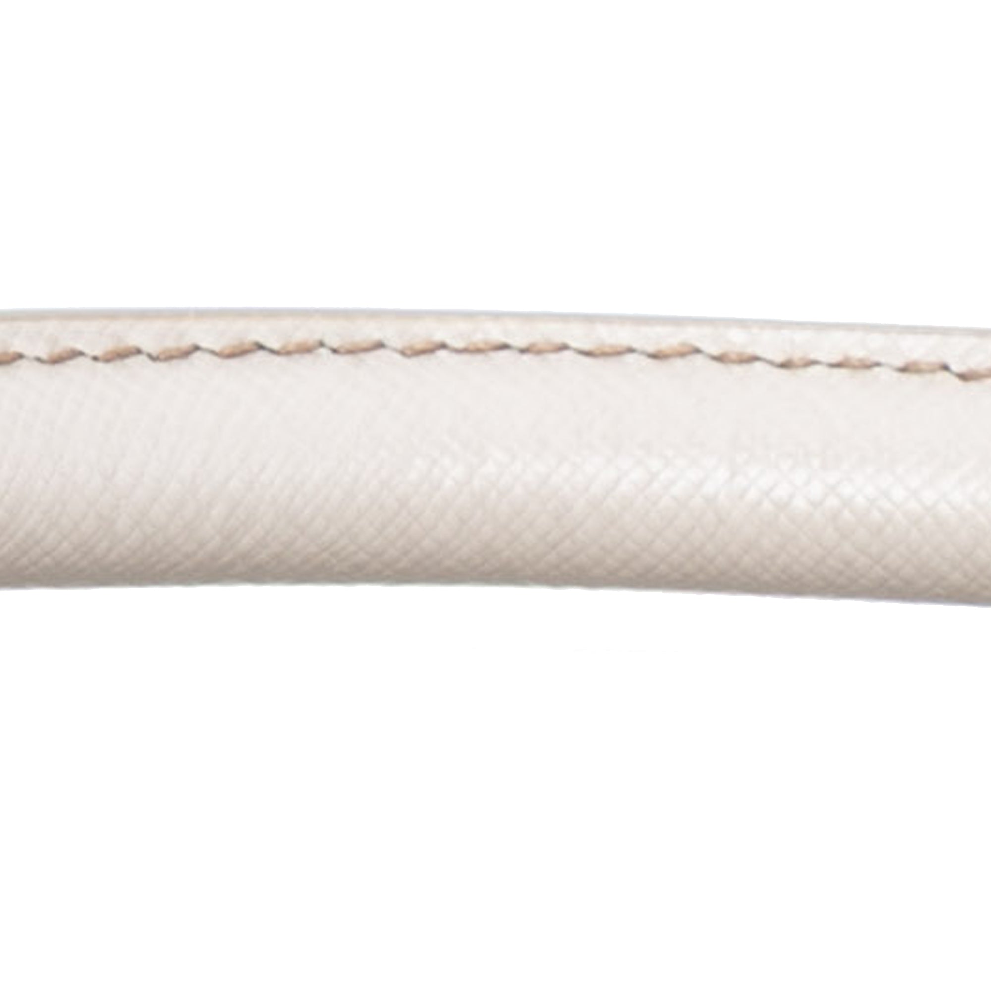 The Galleria satchel features a saffiano leather body, rolled leather top handles, an open top with snap closure, an interior zip compartment, and interior zip and slip pockets. Retail Price: 2923.00