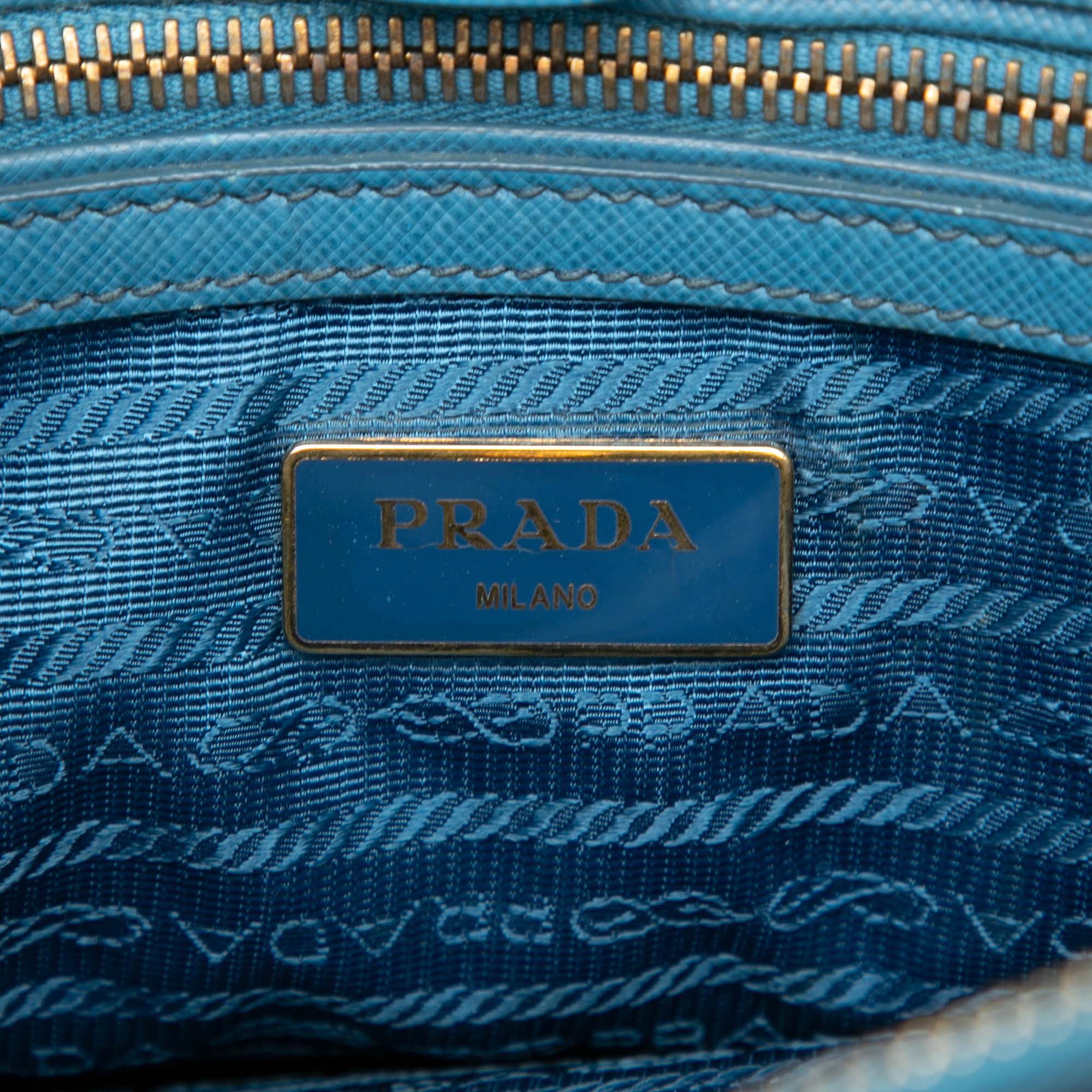 The Galleria satchel features a saffiano leather body, rolled leather handles, a detachable flat leather shoulder strap, an open top with snap closure, an interior zip compartment, and interior zip and slip pockets. Retail Price: 3762.00