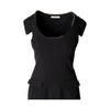 This Prada Midi Dress stands out with its boxy look, thanks to the pleats on the short sleeves and white piping on the neckline. Crafted with virgin wool, this dress features a deep round neck, plus a belt on the back to give you a flattering fit.