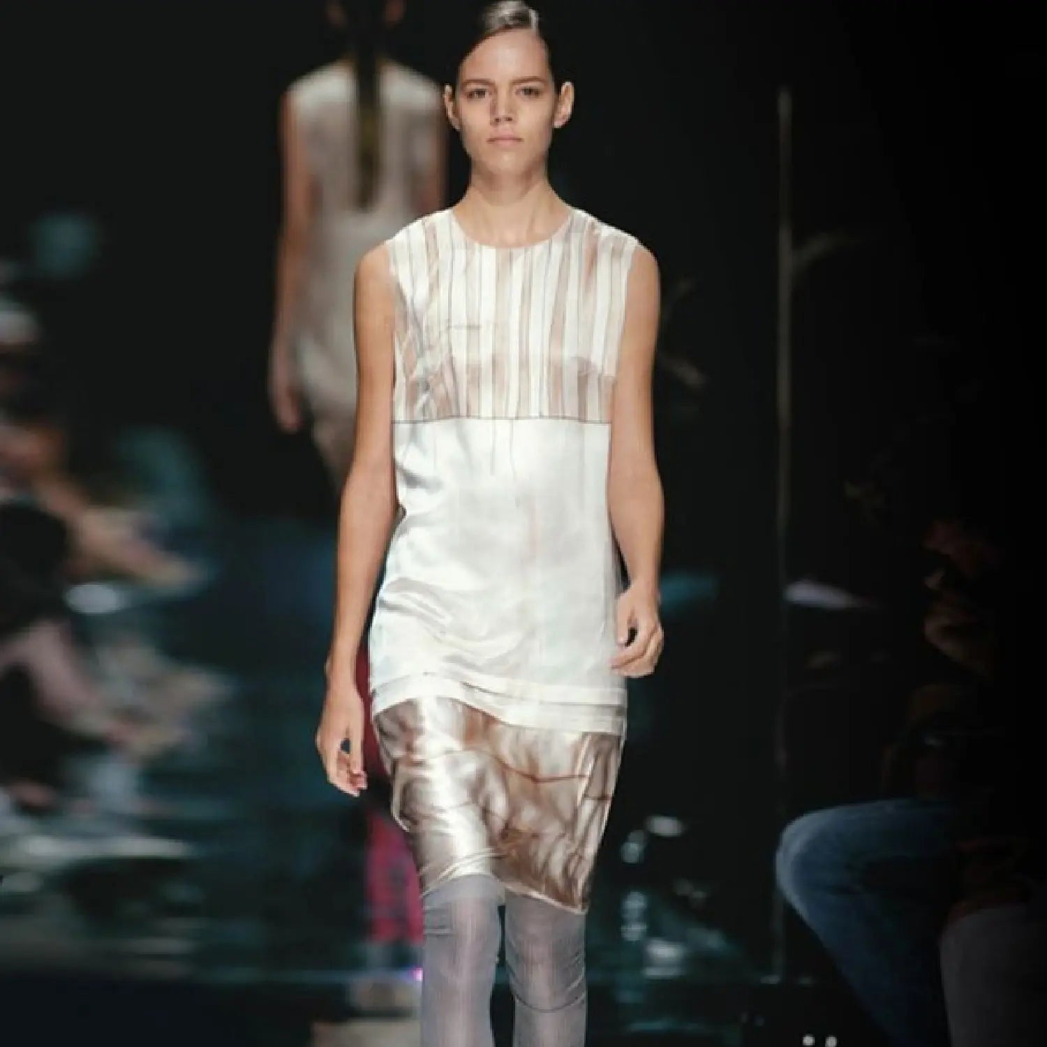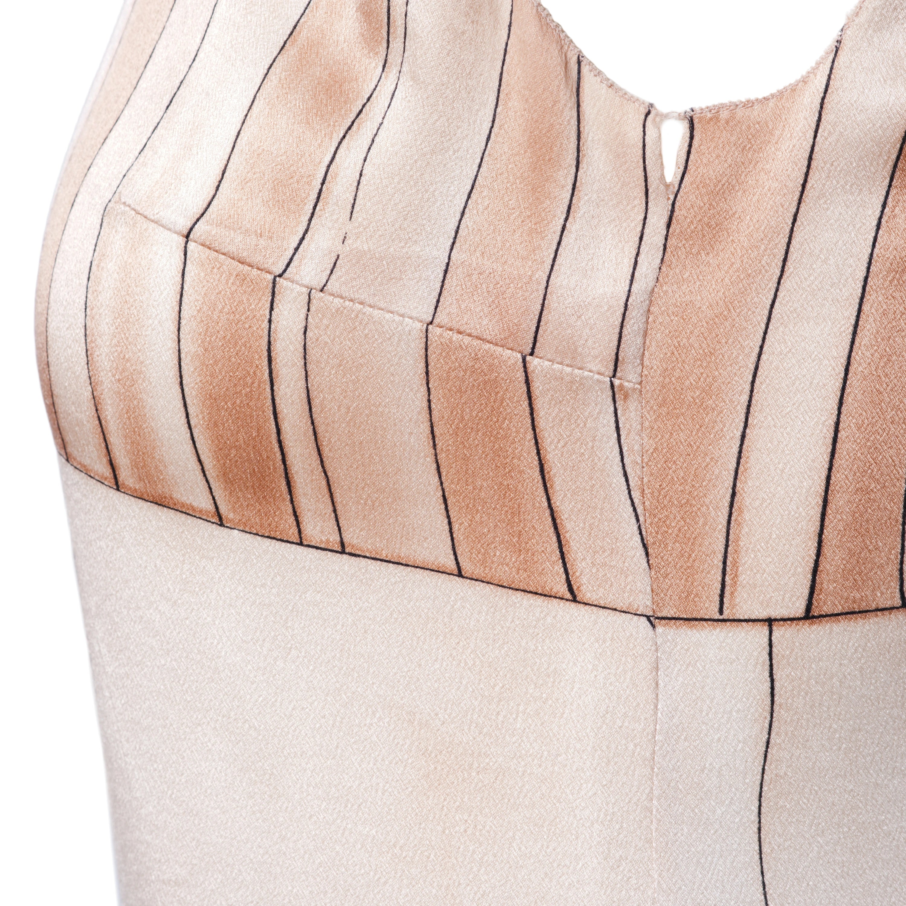 The Prada silk midi dress from the Spring/Summer 2006 collection is an iconic piece that captures the brand’s creative vision during one of its most defining periods. Crafted from high-quality silk, it features a fluid, luminous texture that moves naturally with the body.