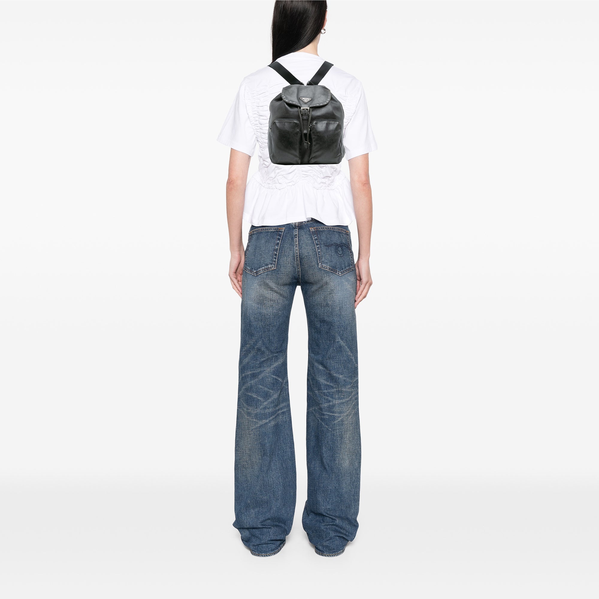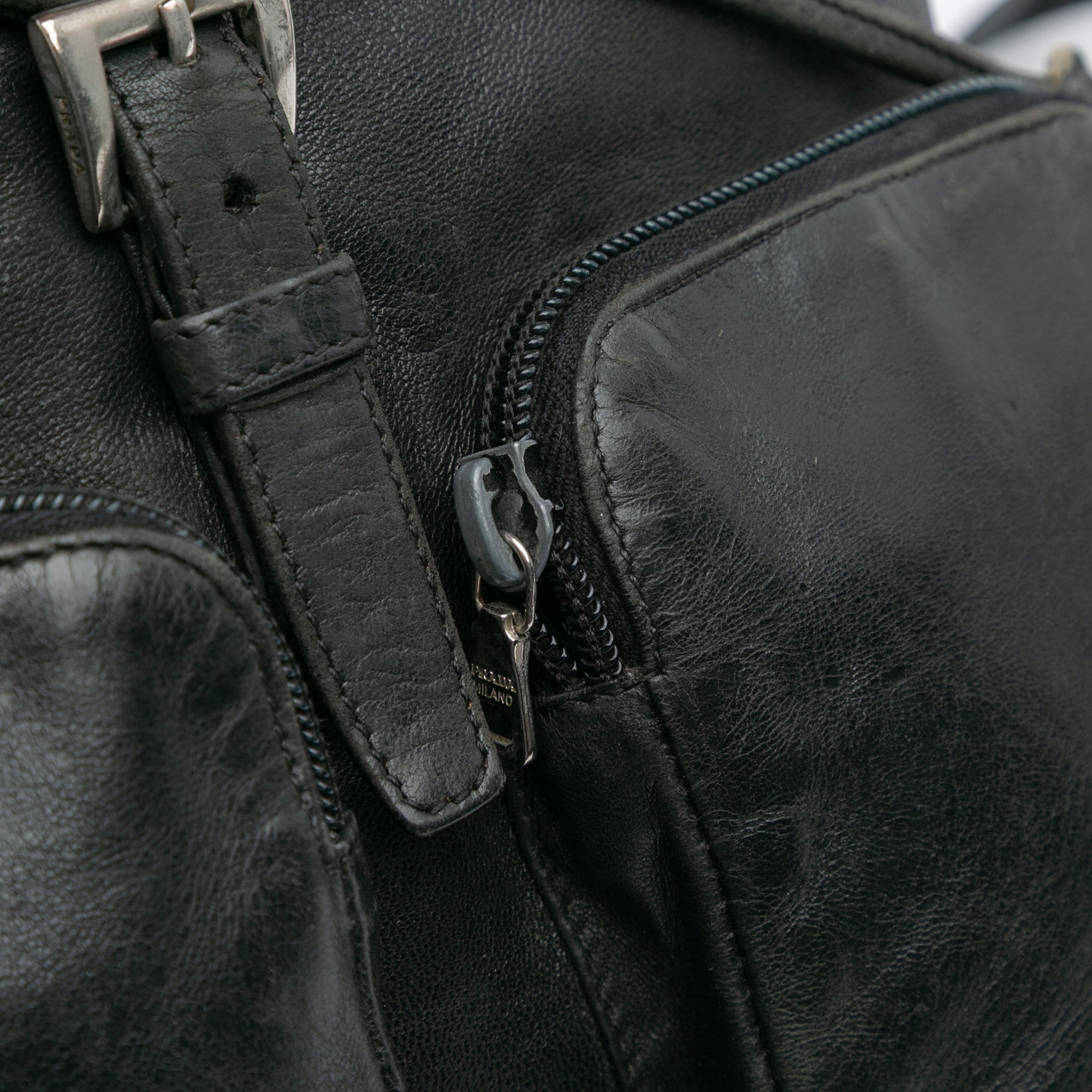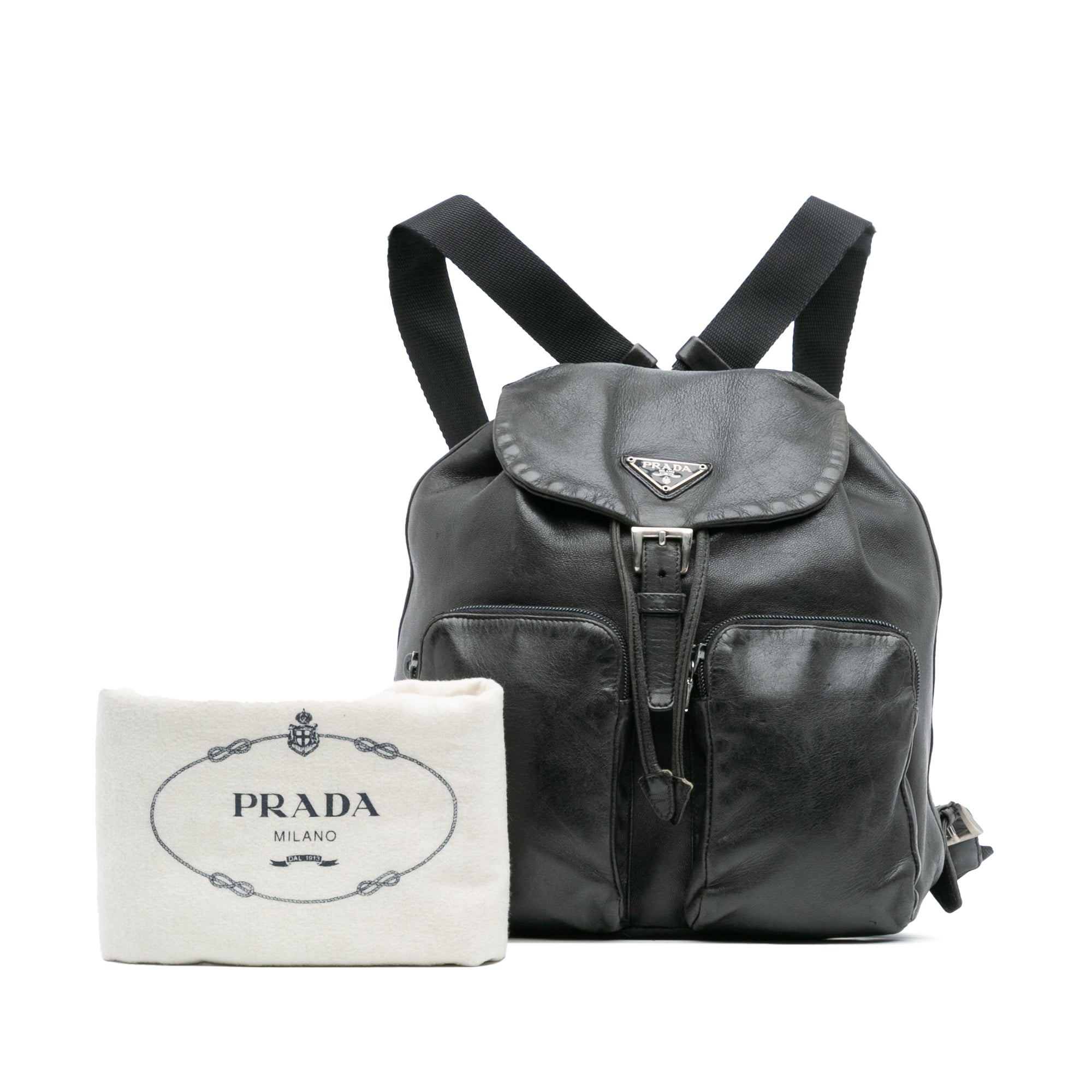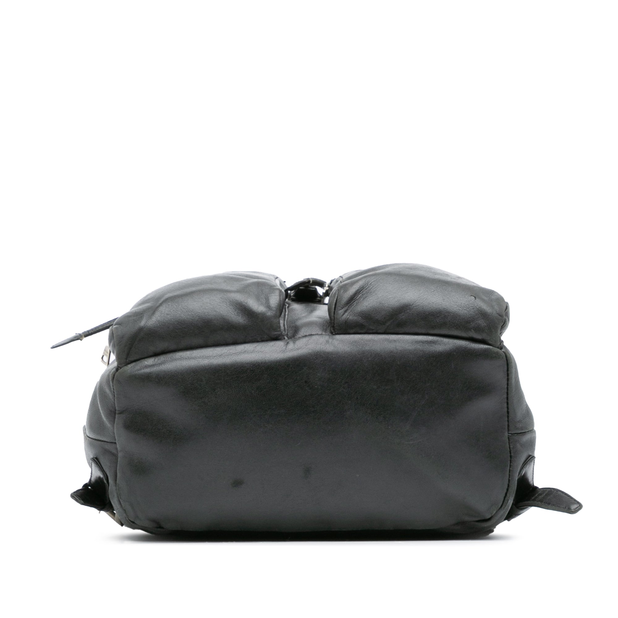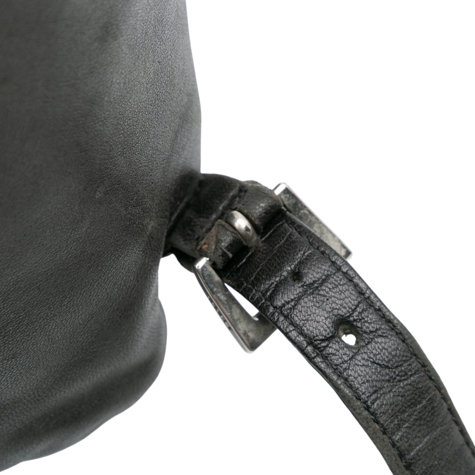 This backpack features a nappa leather body, adjustable flat back straps, a top flap with buckle closure, an open top with drawstring closure, exterior front zip pockets, and an interior zip pocket. Inclusion: Dust bag. Retail Price: 430.00