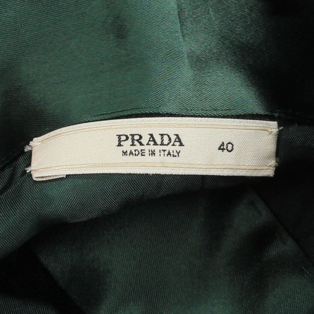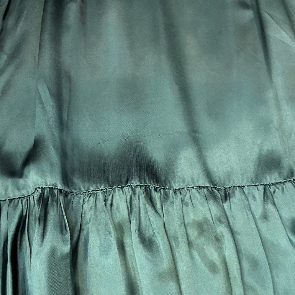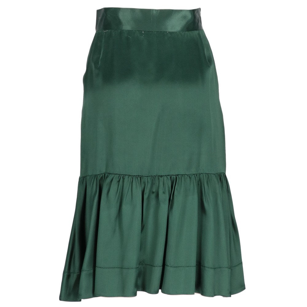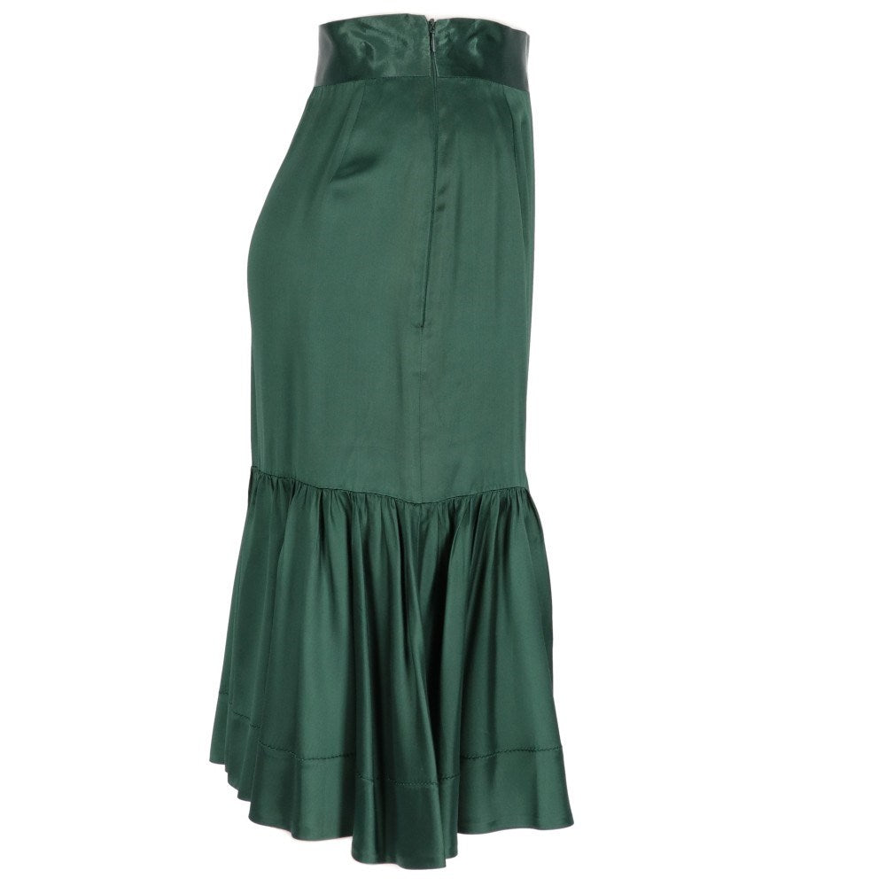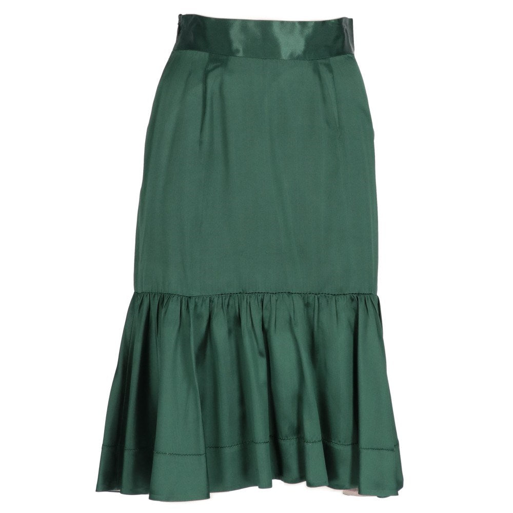 Prada 2000s petrol green silk skirt. Ruffles at the bottom, side zip fastening. The item shows very slight frontal imperfections as shown in the picture.
