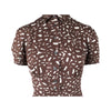 Look chic in this Prada printed midi dress, crafted from comfortable material. The serene brown abstract print is complemented by the collar, short pleated sleeves with cuffed hems, and pleats at the waist for a tailored fit. The front buttons and small logo details provide subtle branding.