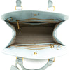 This satchel features a saffiano leather body, rolled leather handles, a detachable flat leather strap, an open top with magnetic snap closure, and interior zip and slip pockets. Retail Price: 1345.00