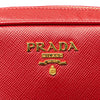 This pouch features a saffiano leather body, and a top zip closure. Retail Price: 395.00