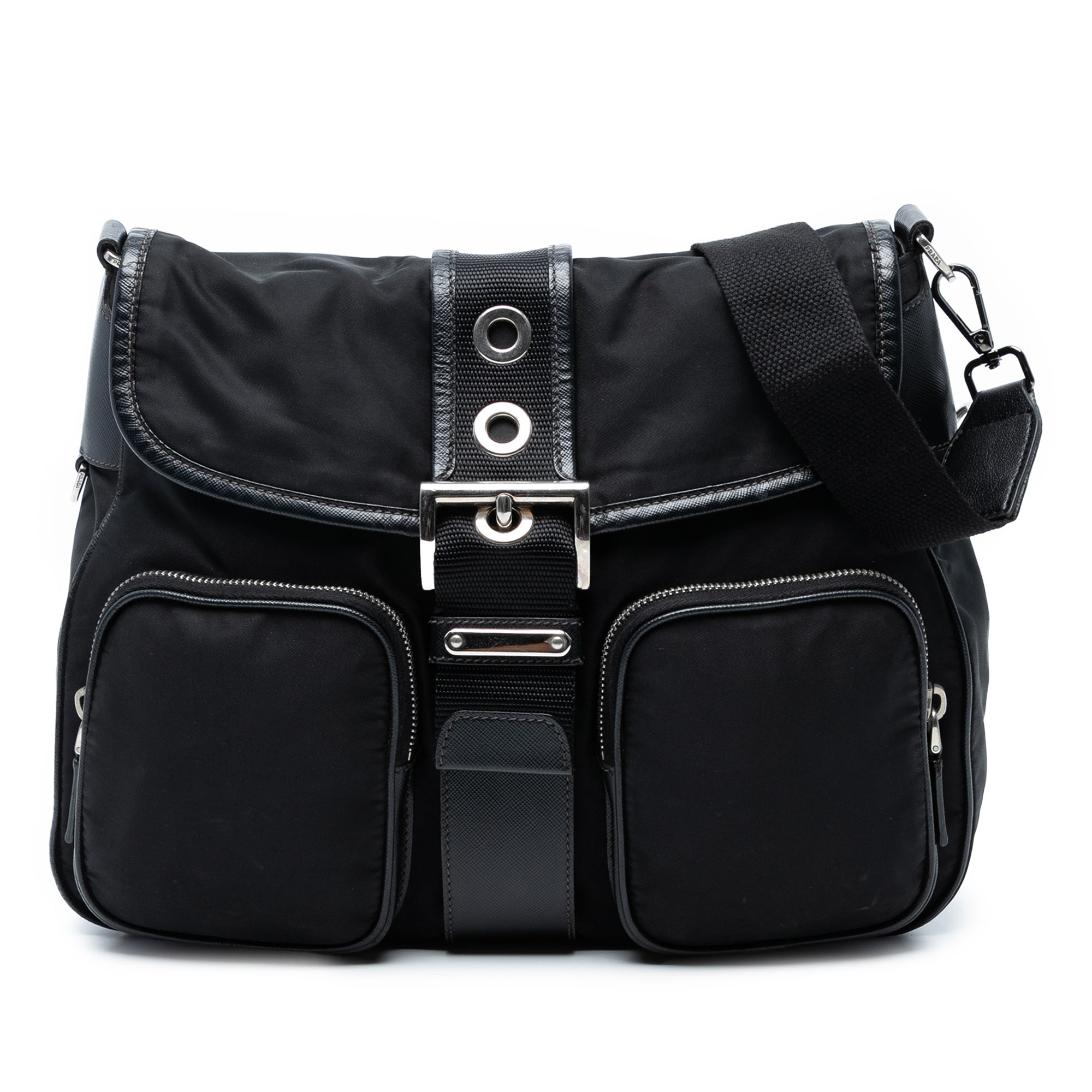 Prada Saffiano Trimmed Tessuto Buckle Messenger Bag Secondhand