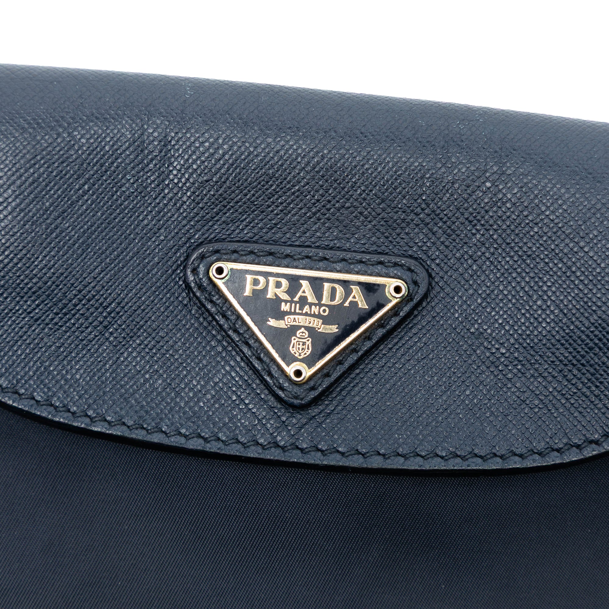 Prada Saffiano Trimmed Tessuto Chain Crossbody