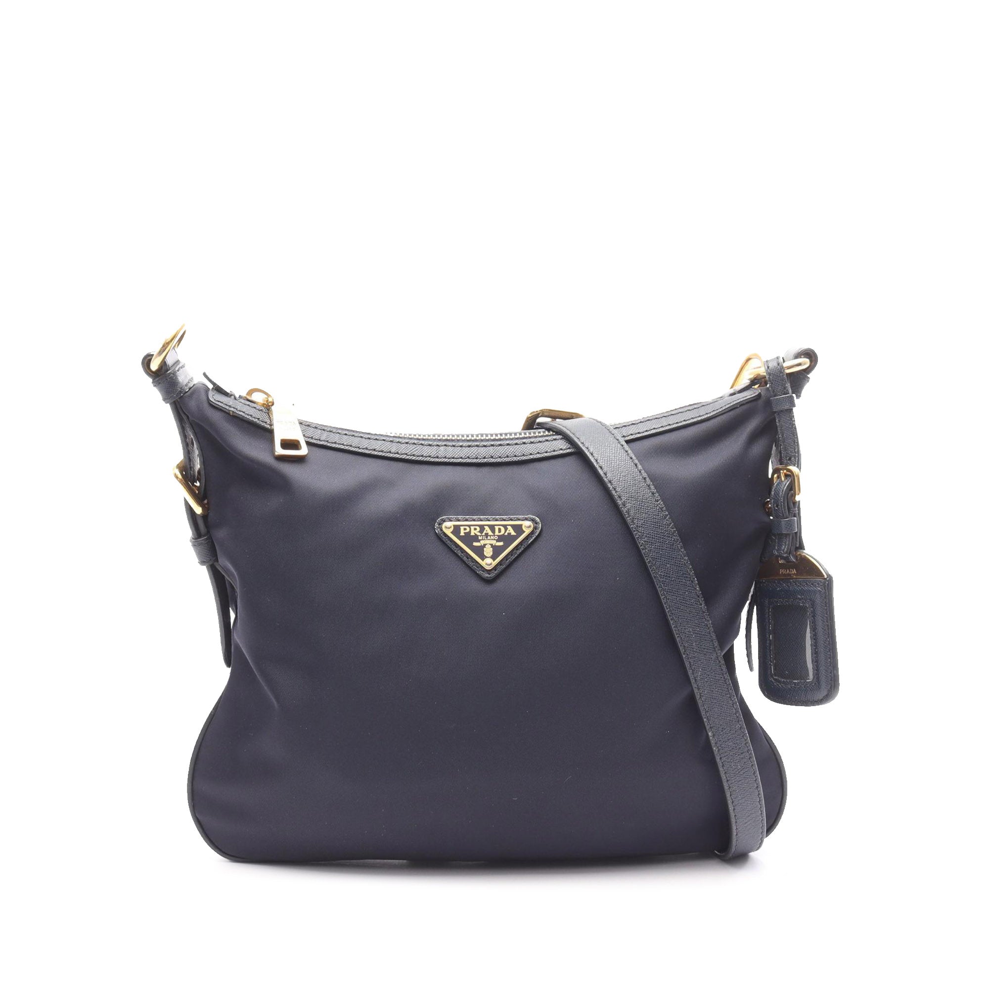 Prada Saffiano Trimmed Tessuto Zip Top Crossbody