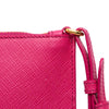 This pouch features a saffiano leather body, a flat leather wrist strap, a top zip closure, and an interior zip pocket. Inclusion: box. Retail Price: 580.00