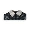 This Prada Sequin Top stands out with its unique multicolor checkered print, embellished with stylish sequins. The top is finished off with a white collar and cuff, showing off a crisp contrast. A concealed zip closure at the back adds a secure and seamless fit.