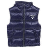 Prada sleeveless hooded down jacket. navy blue. white front logo. nylon. never worn with tags. size M. shop value 1800€