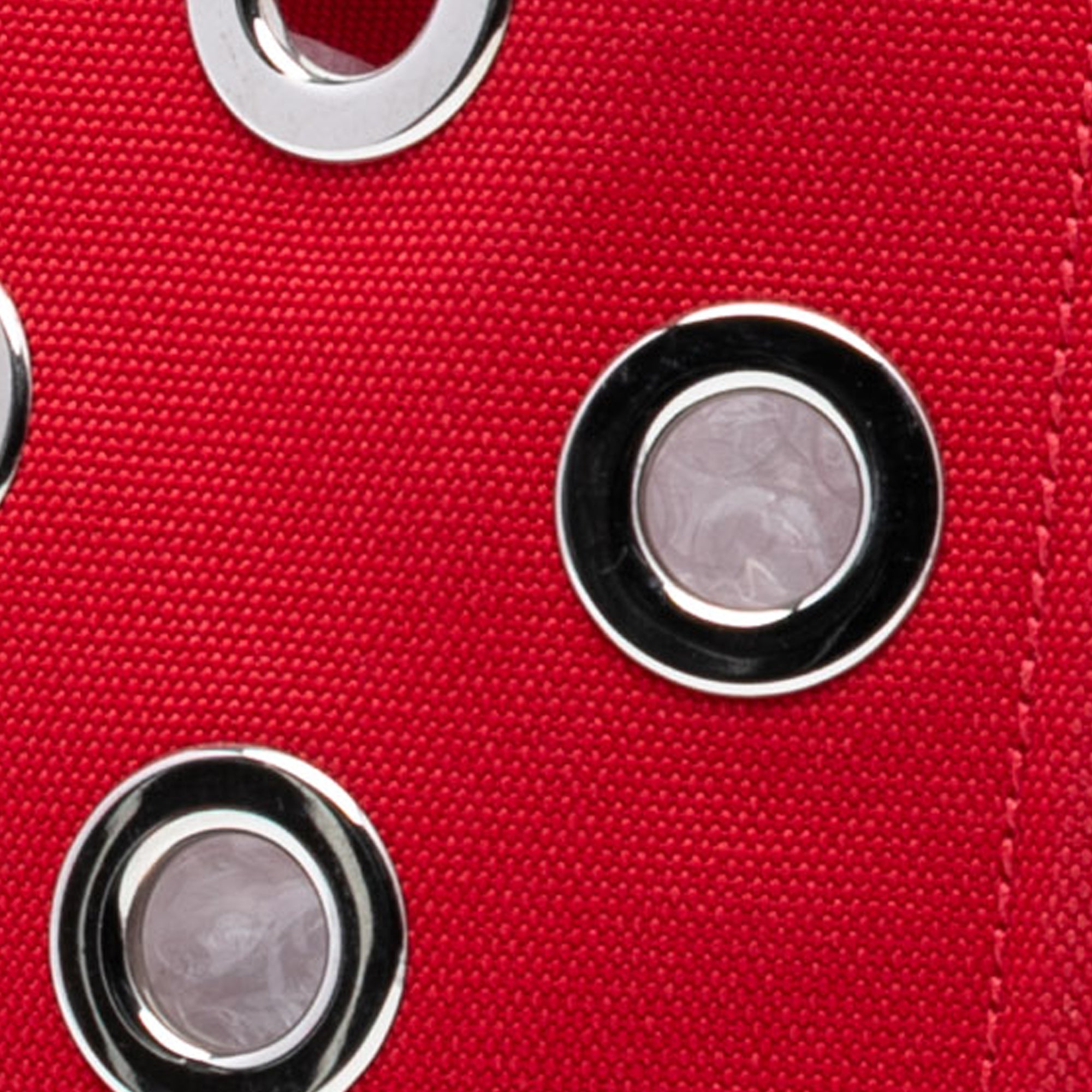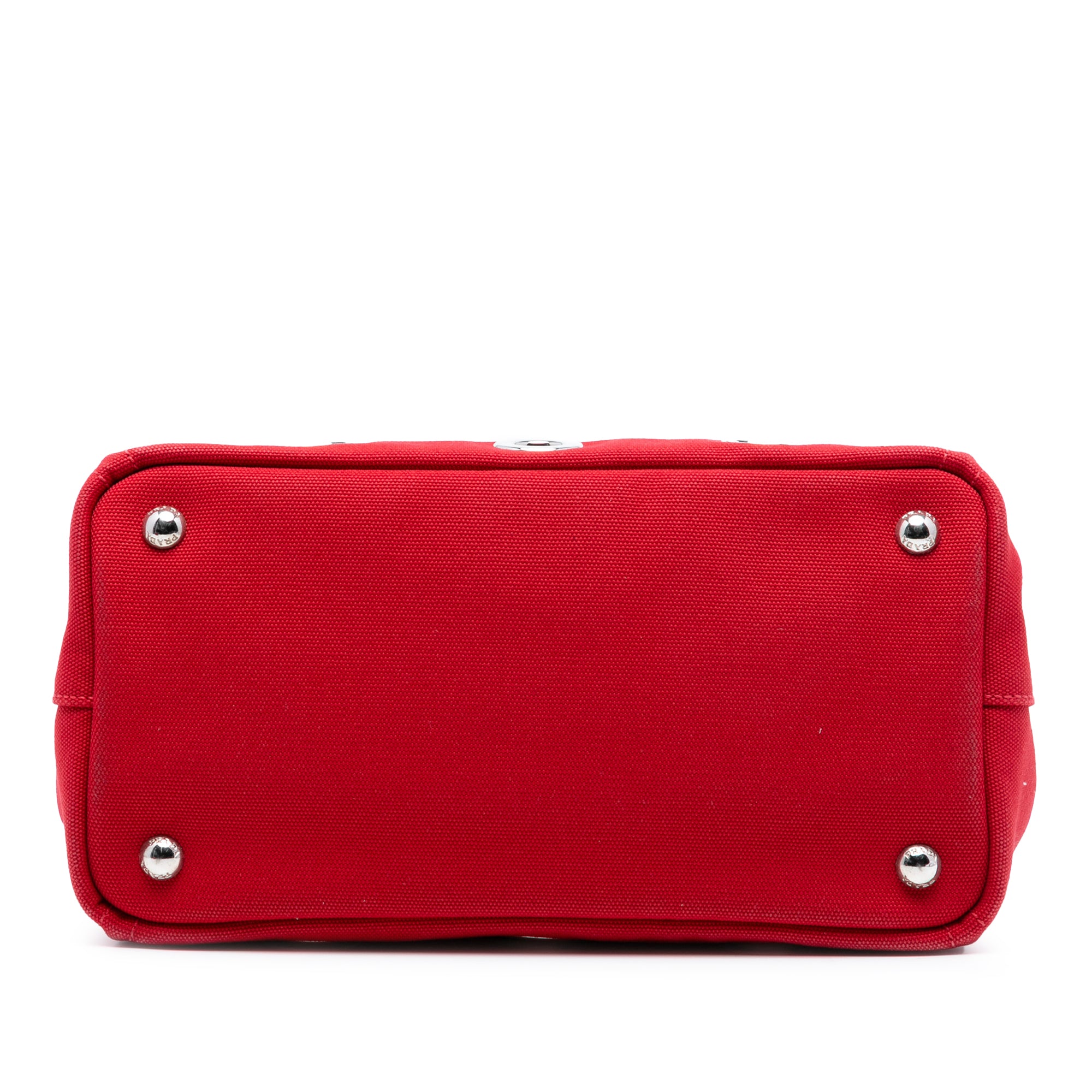 This satchel features a perforated canvas body, rolled top handles, a detachable and adjustable flat shoulder strap, and an open top. Retail Price: 1090.00