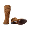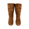 These Prada Suede Folded Boots combine style and practicality with their foldable design. Crafted from brown suede, they feature tonal stitching on the upper and a signature logo on the outsole in golden tone metal. A versatile option to elevate any look.