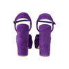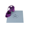 These Prada Suede Platform Heels offer a luxurious look with its peep toe high heels and platform style. Crafted from soft suede in a beautiful purple color, they feature a twisted cross over the vamp and an ankle strap with a buckle closure. A stylish logo plaque is featured underneath.