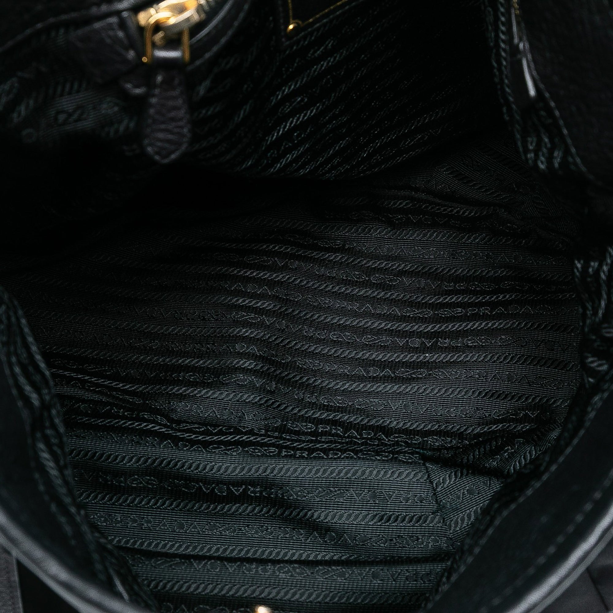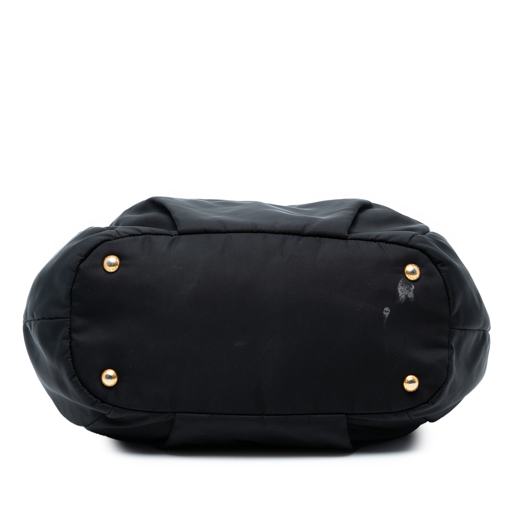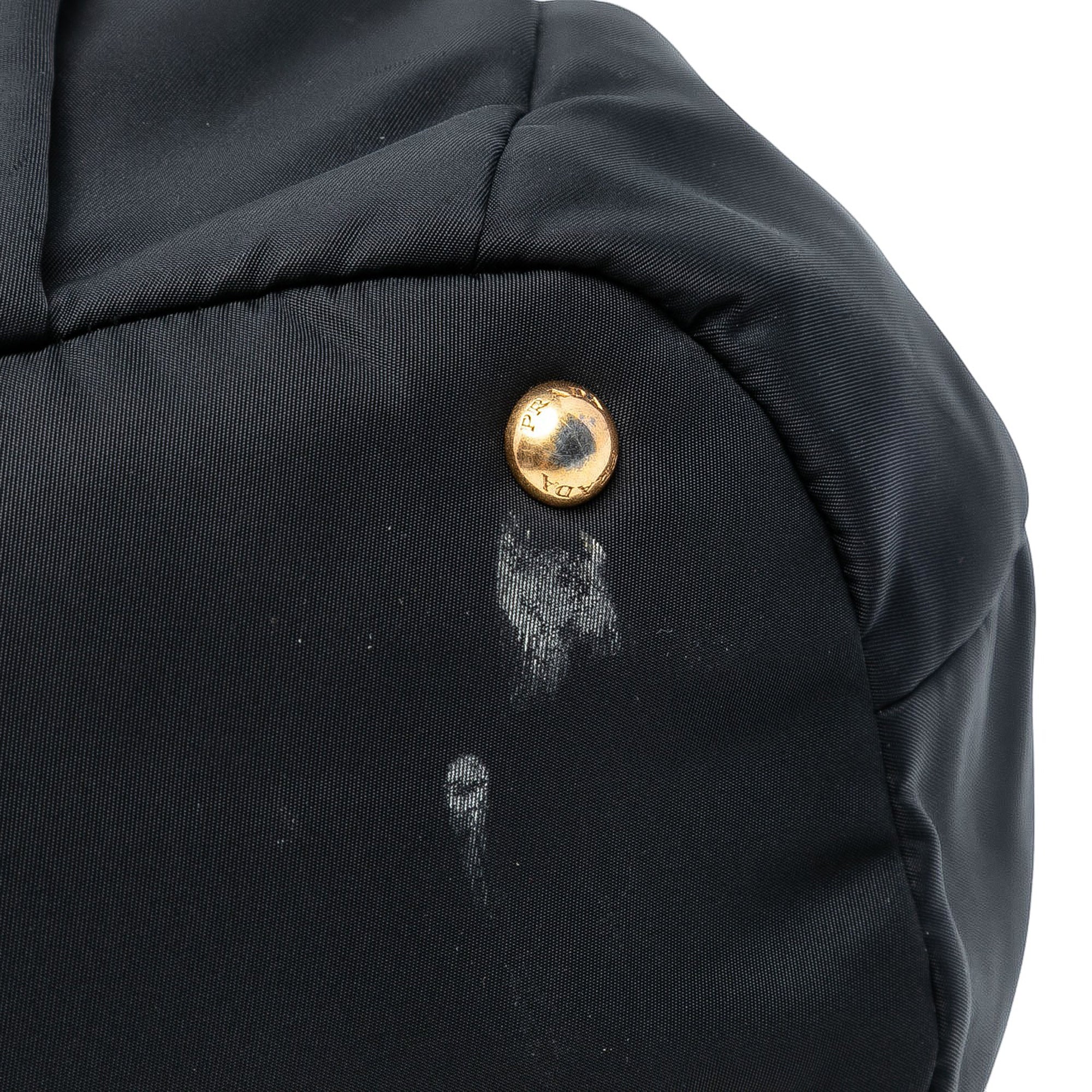 This satchel features a nylon body, rolled leather handles, an open top with magnetic button closure, and an interior zip pocket. Retail Price: 787.00