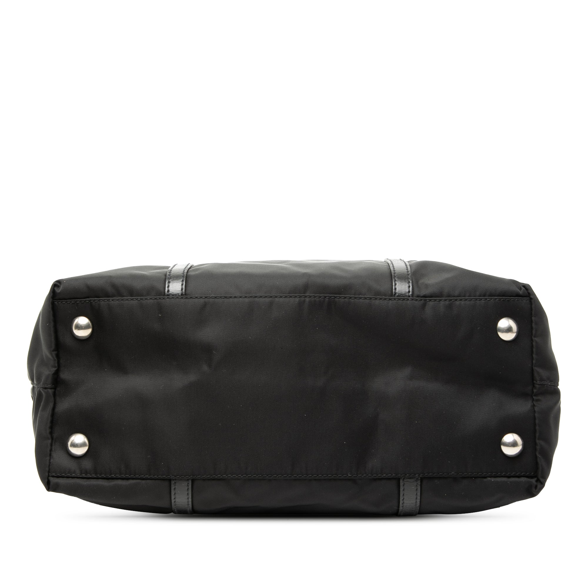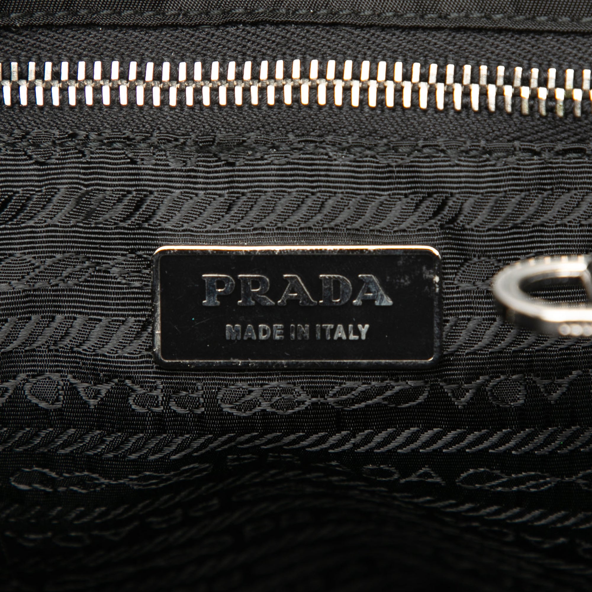 This shoulder bag features a nylon body with leather trim, rolled leather handles, an open top with side hook closure, and an interior zip pocket. Inclusion: Dust bag. Retail Price: 750.00