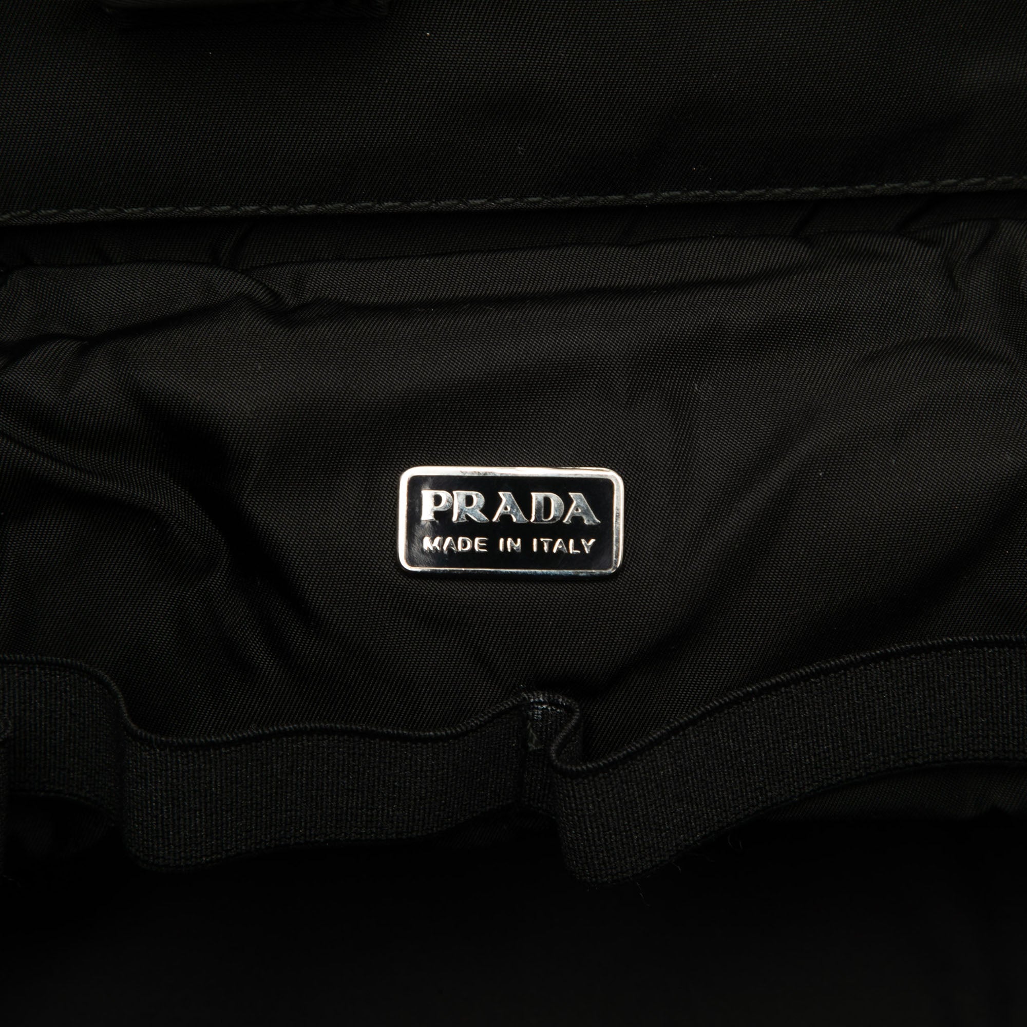 This vanity bag features a nylon body, a flat top handle, and a zip around closure. Retail Price: 375.00