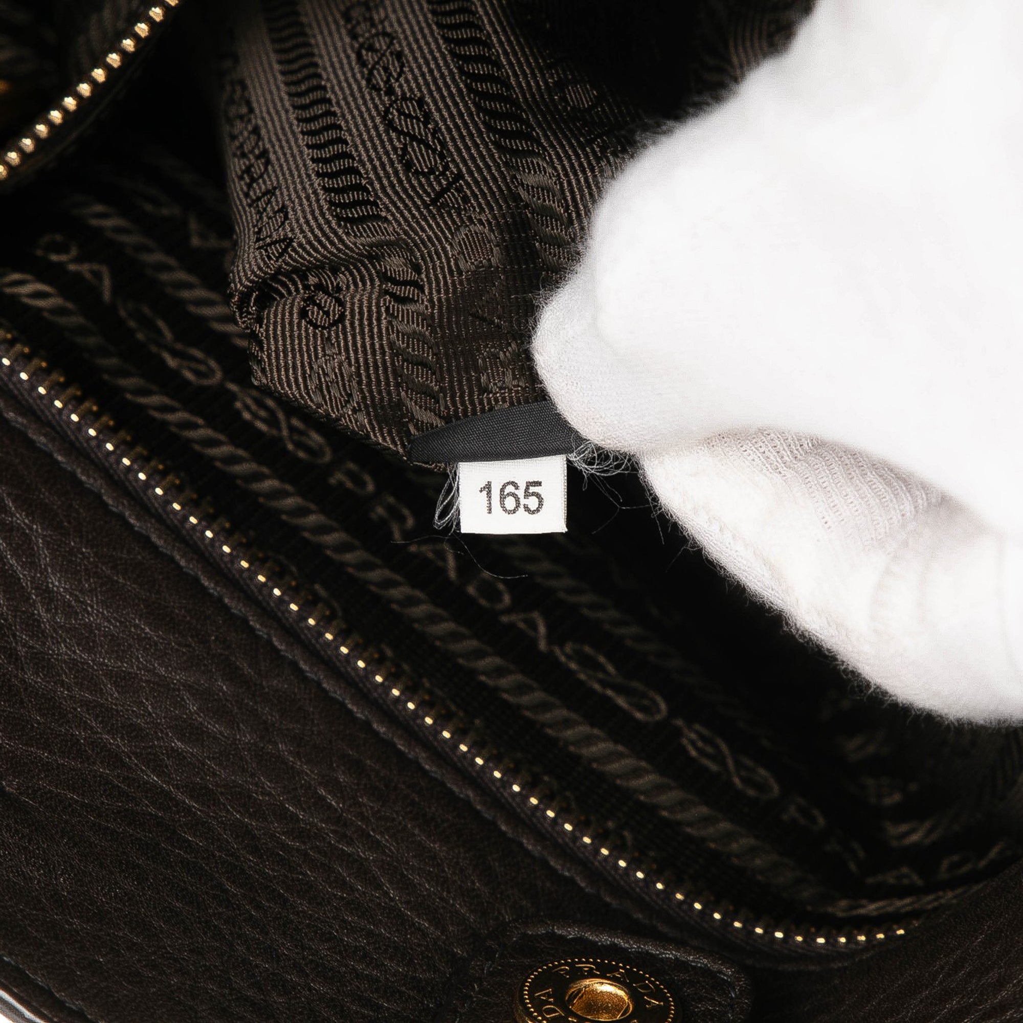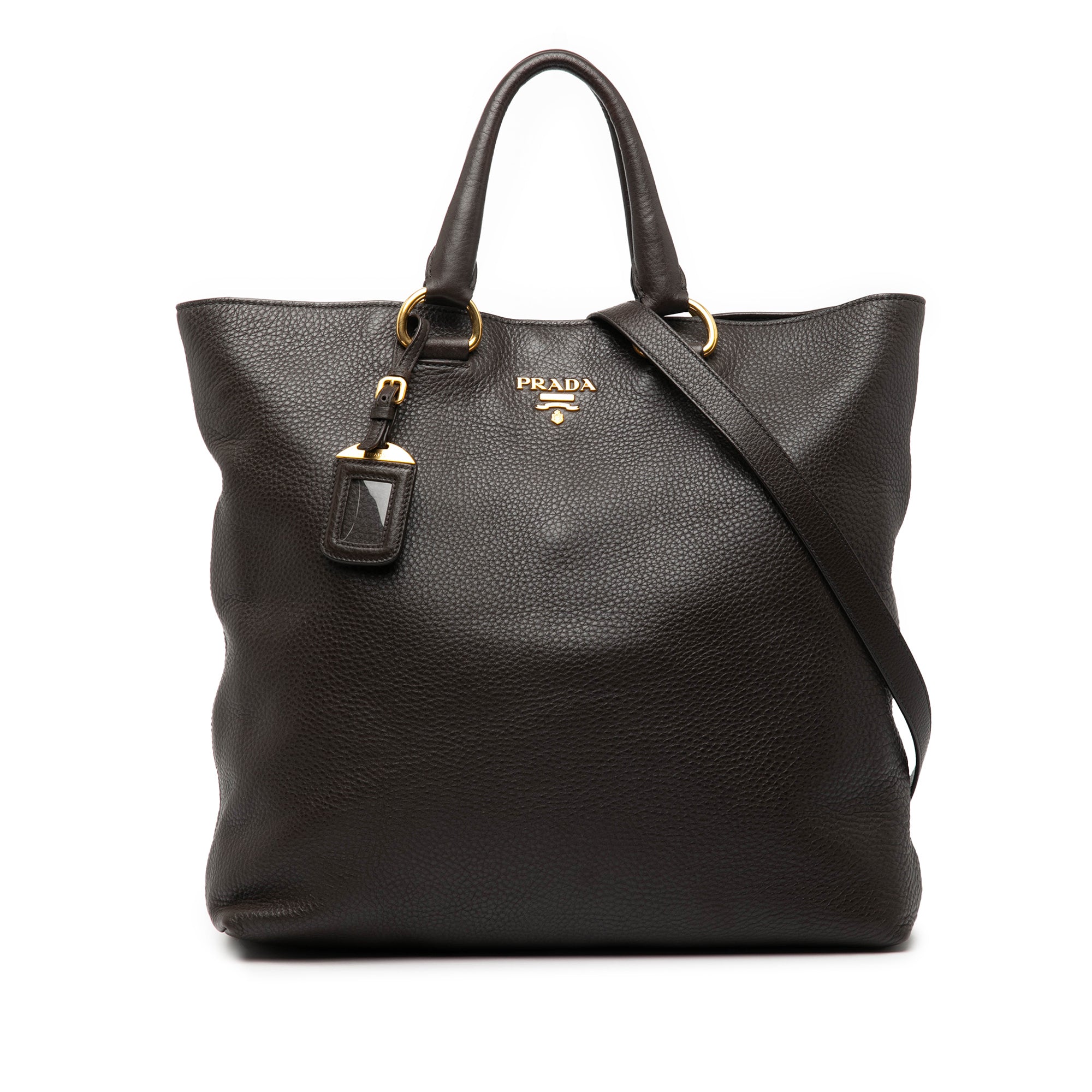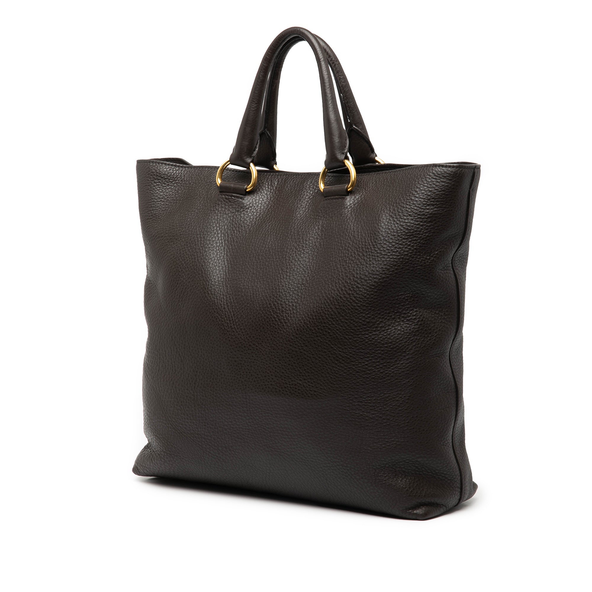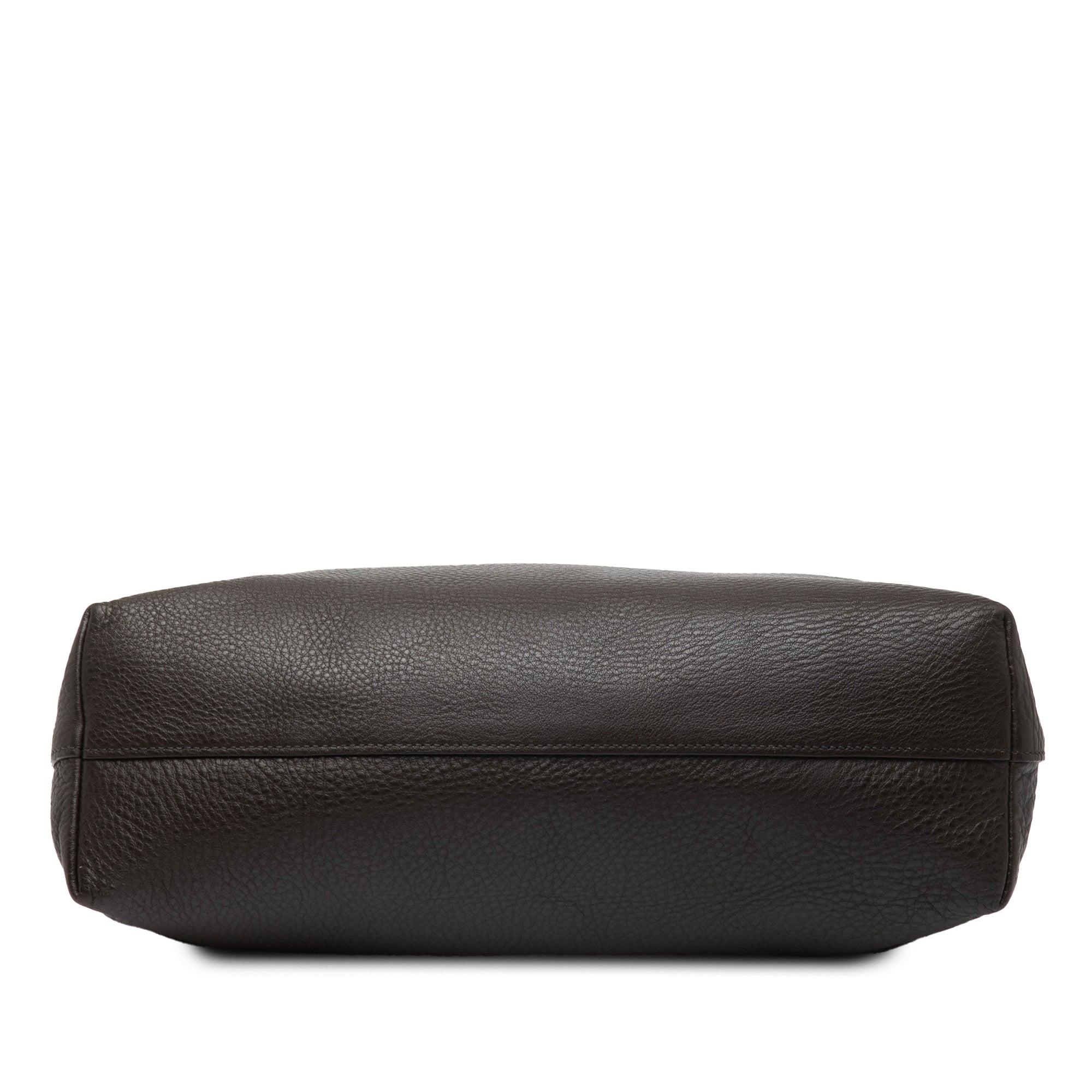 This satchel features a vitello daino leather body, rolled leather top handles, a detachable flat leather shoulder strap, an open top with a magnetic snap closure, and an interior zip pocket. Retail Price: 2200.00