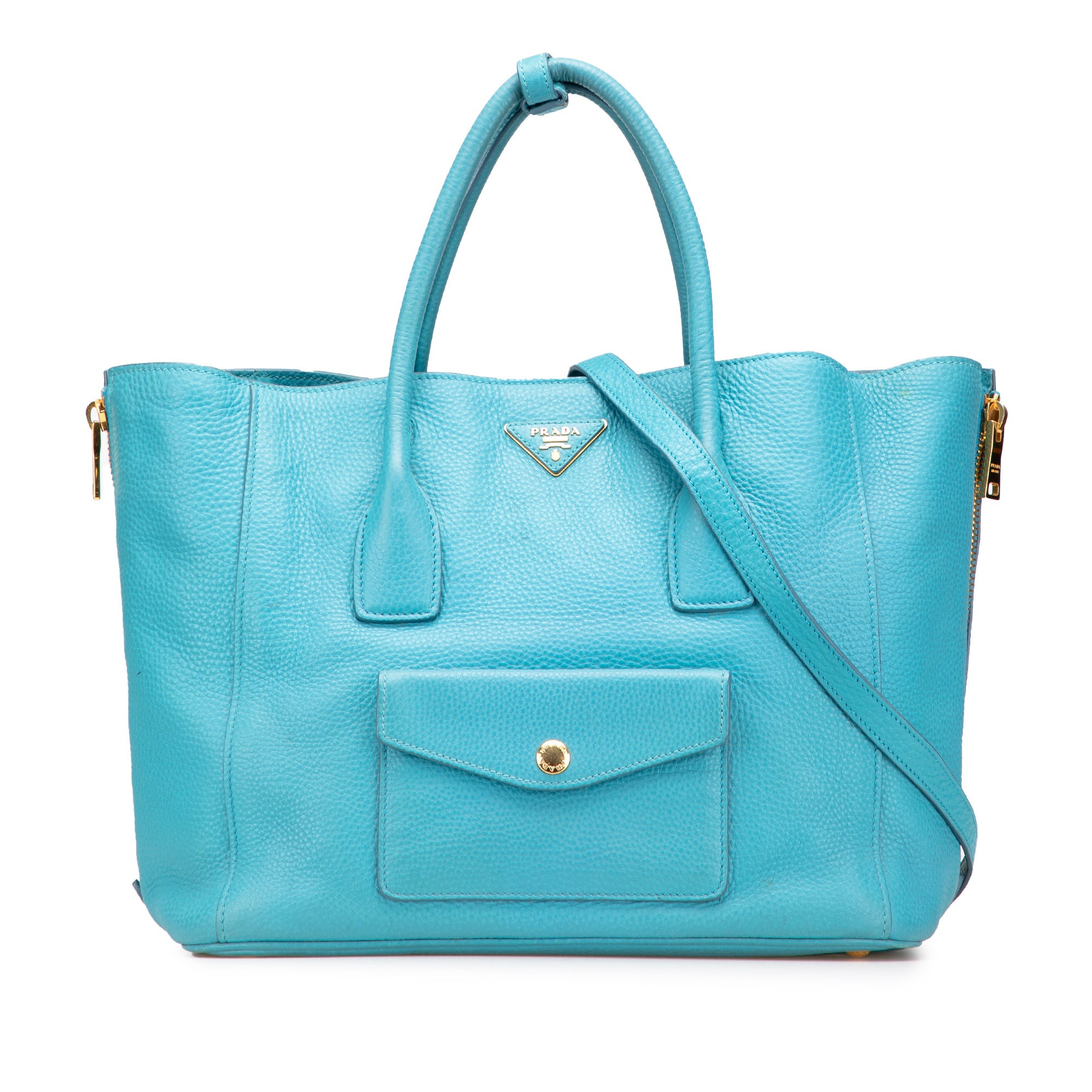 Prada Vitello Daino Side Zip Twin Pocket Open Convertible Tote