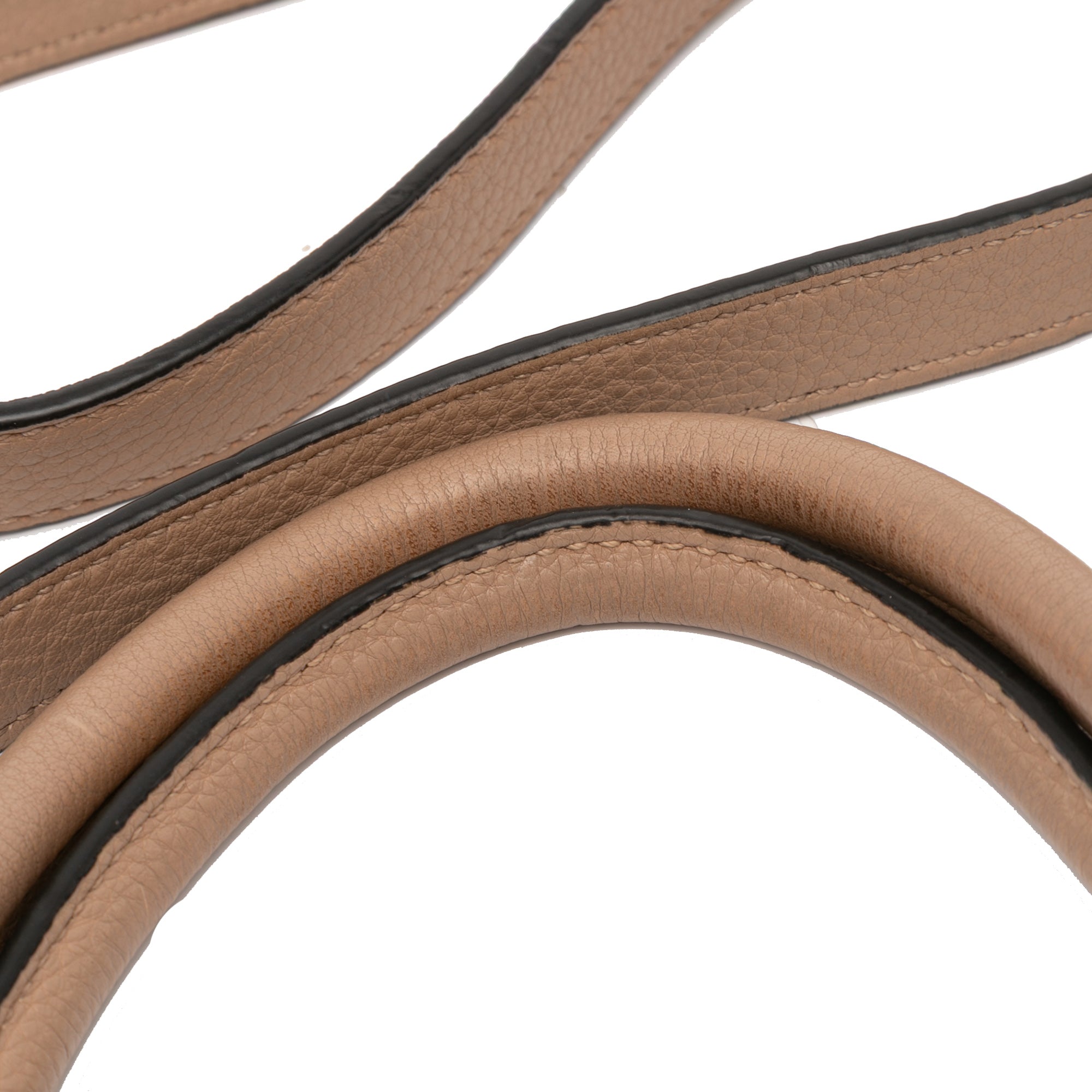 This satchel features a leather body, rolled leather handles, a detachable flat leather strap, an open top with a magnetic closure, an exterior zip pocket, and interior zip and slip pockets. Retail Price: 1500.00