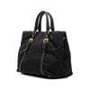 This satchel features a nylon body with leather trim, rolled leather handles, a detachable flat strap, an open top with magnetic closure, and interior zip and slip pockets. Retail Price: 700.00