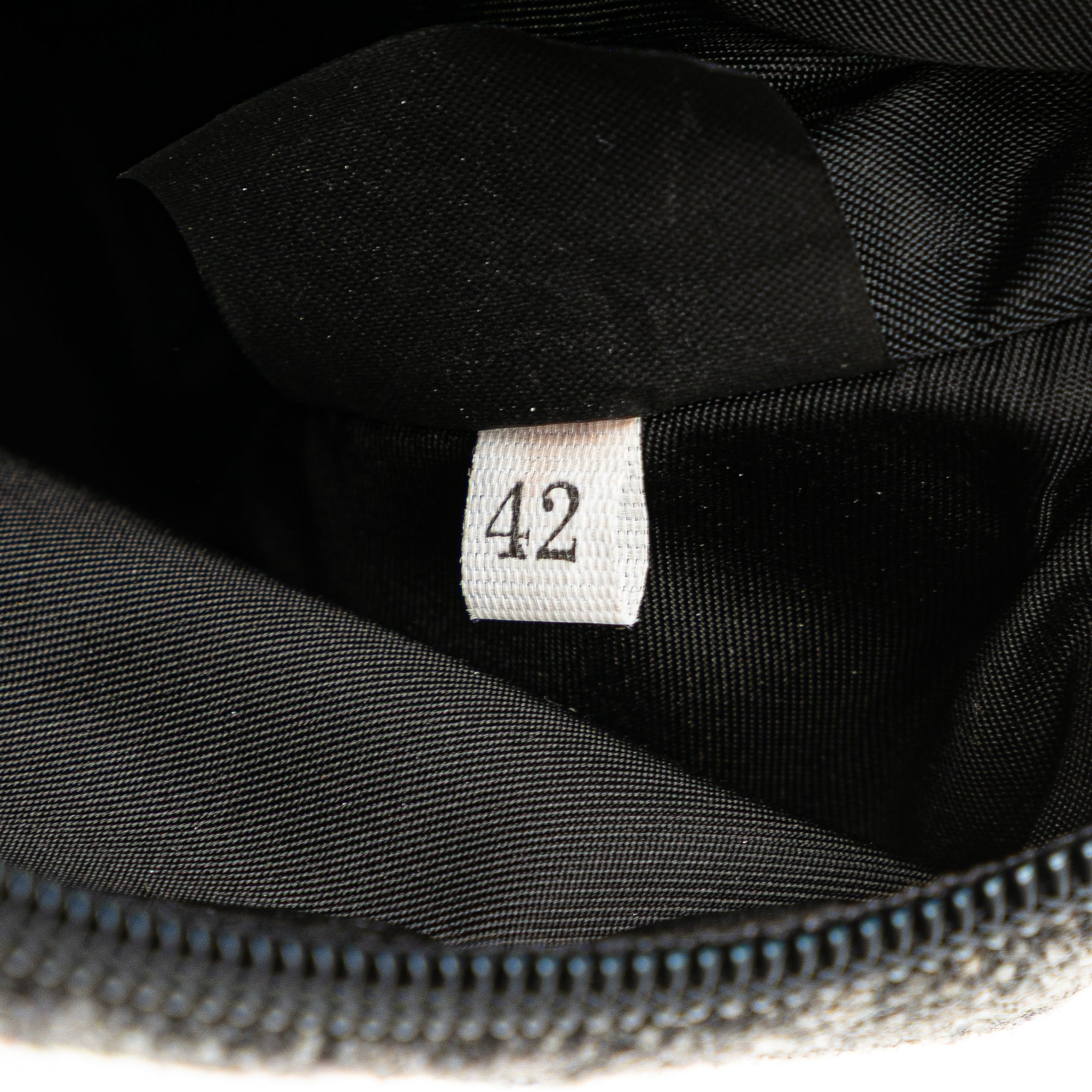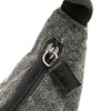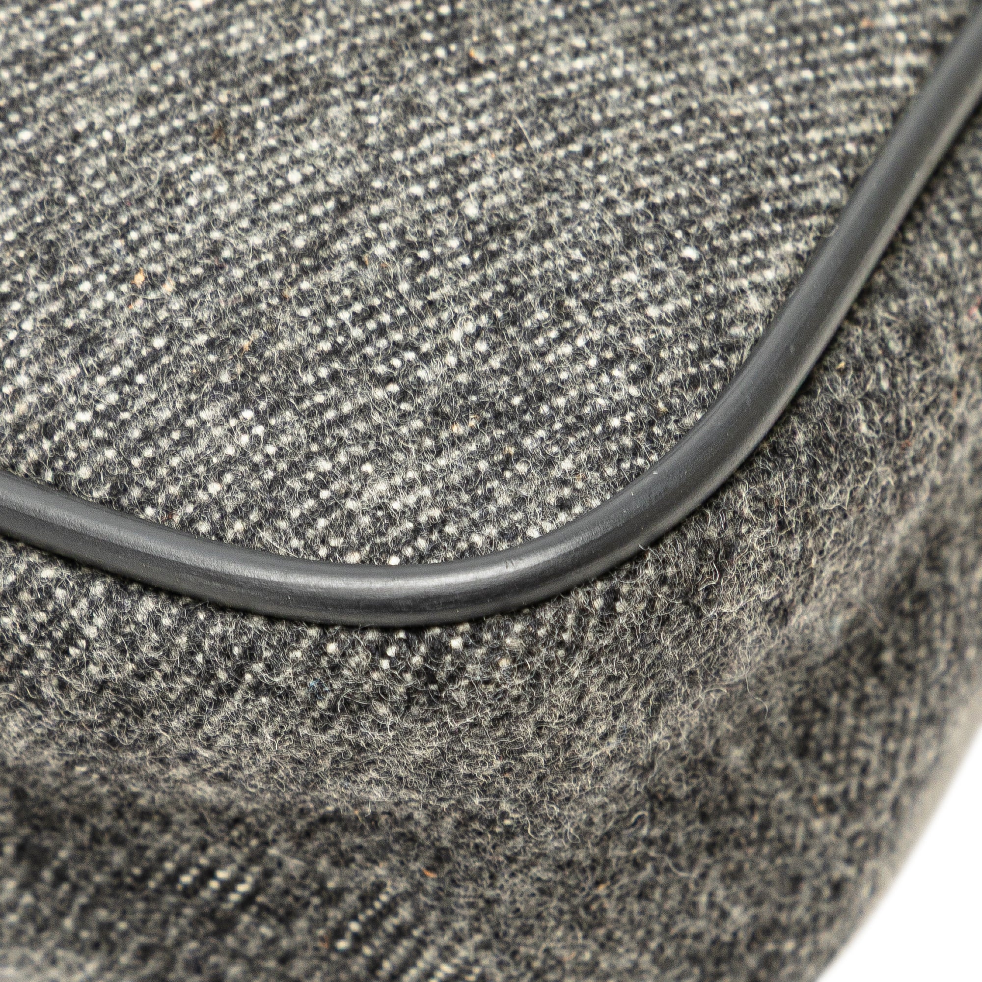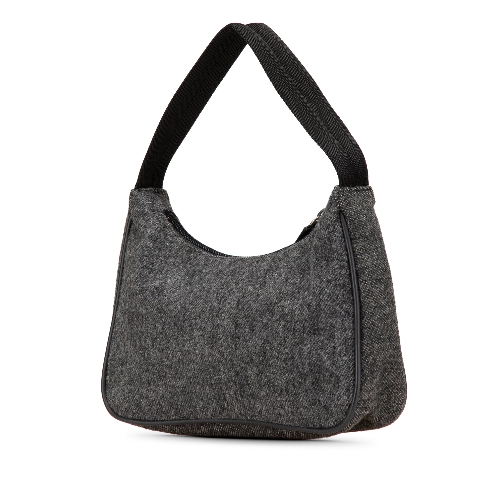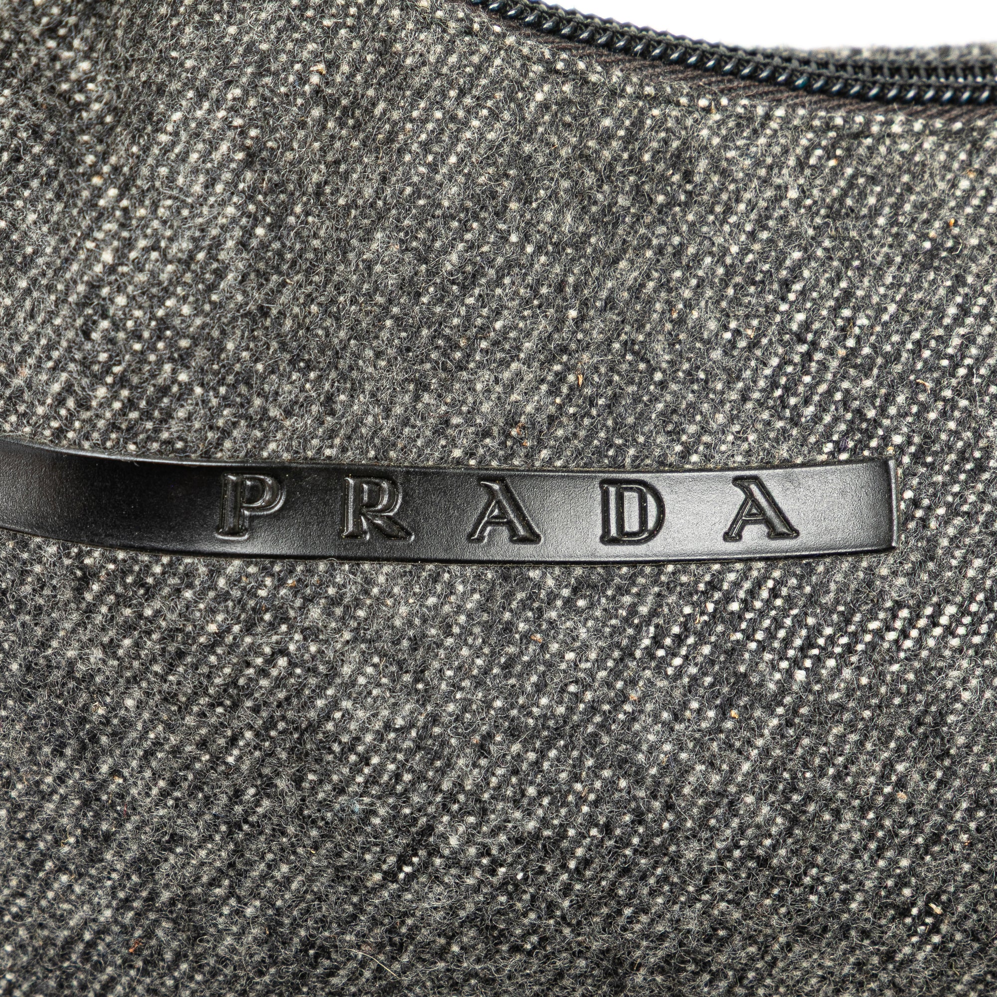 This shoulder bag features a wool body with leather trim, a flat strap, and a top zip closure. Retail Price: 995.00