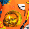 This Moschino Jeans Printed Oversized Shirt captures the essence of the 90s with its bright orange color, unique moon and print designs. Its wide fit, short sleeves, regular collar, front button placket, and two front pockets offer both style and functionality. Get a blast from the past with this statement piece.