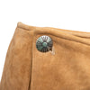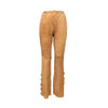 Expertly crafted from luxurious brown suede leather, these Ralph Lauren Country Leather Pants are a unique addition to any wardrobe. The high-waisted design features a pouch style waist with a 3-button closure, and buttons at the side hem for added detail.