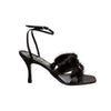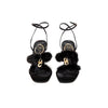 Rene Caovilla sandals blend elegance and chic in plush black fur straps, golden snake accents, and a sleek ankle strap in black leather with satin finish.