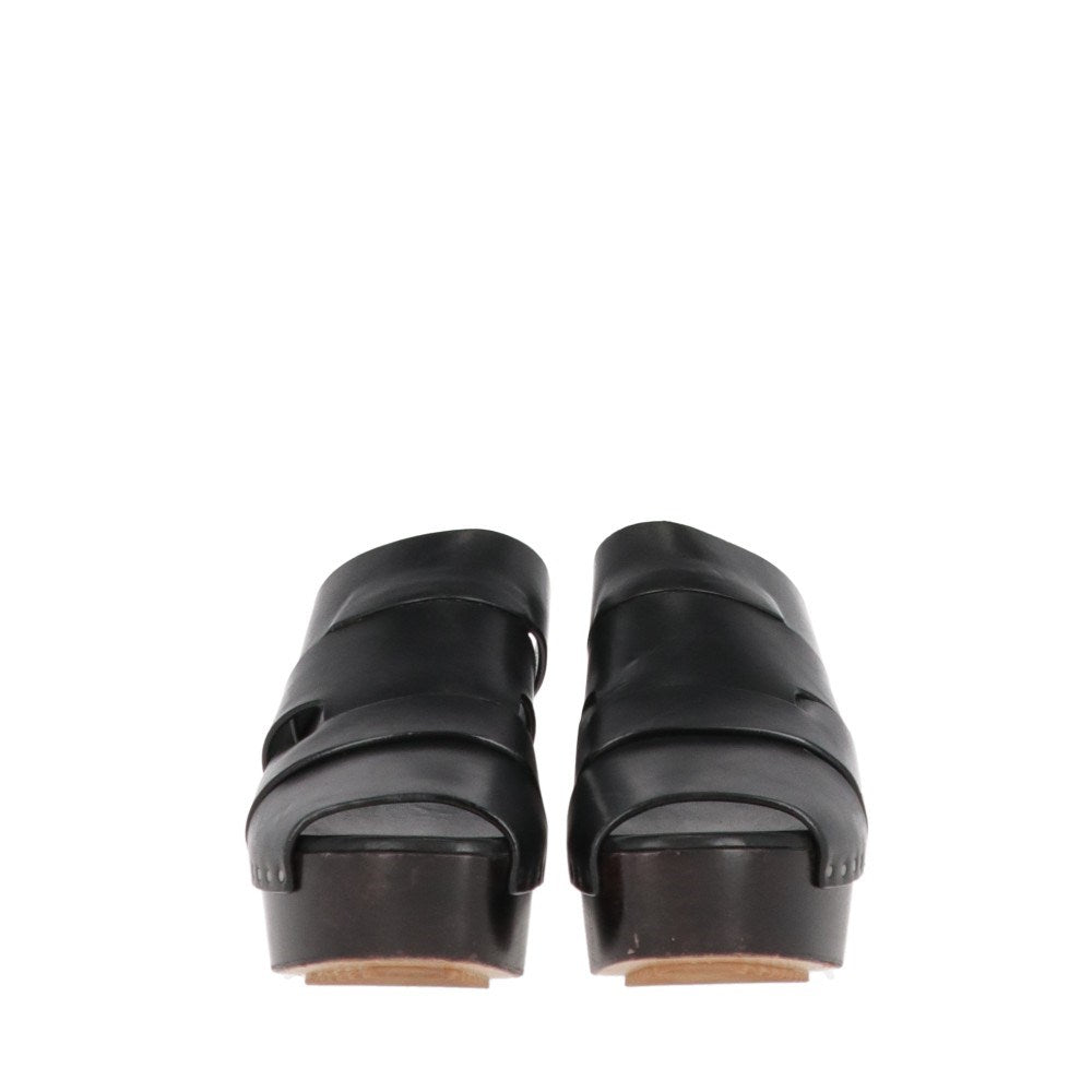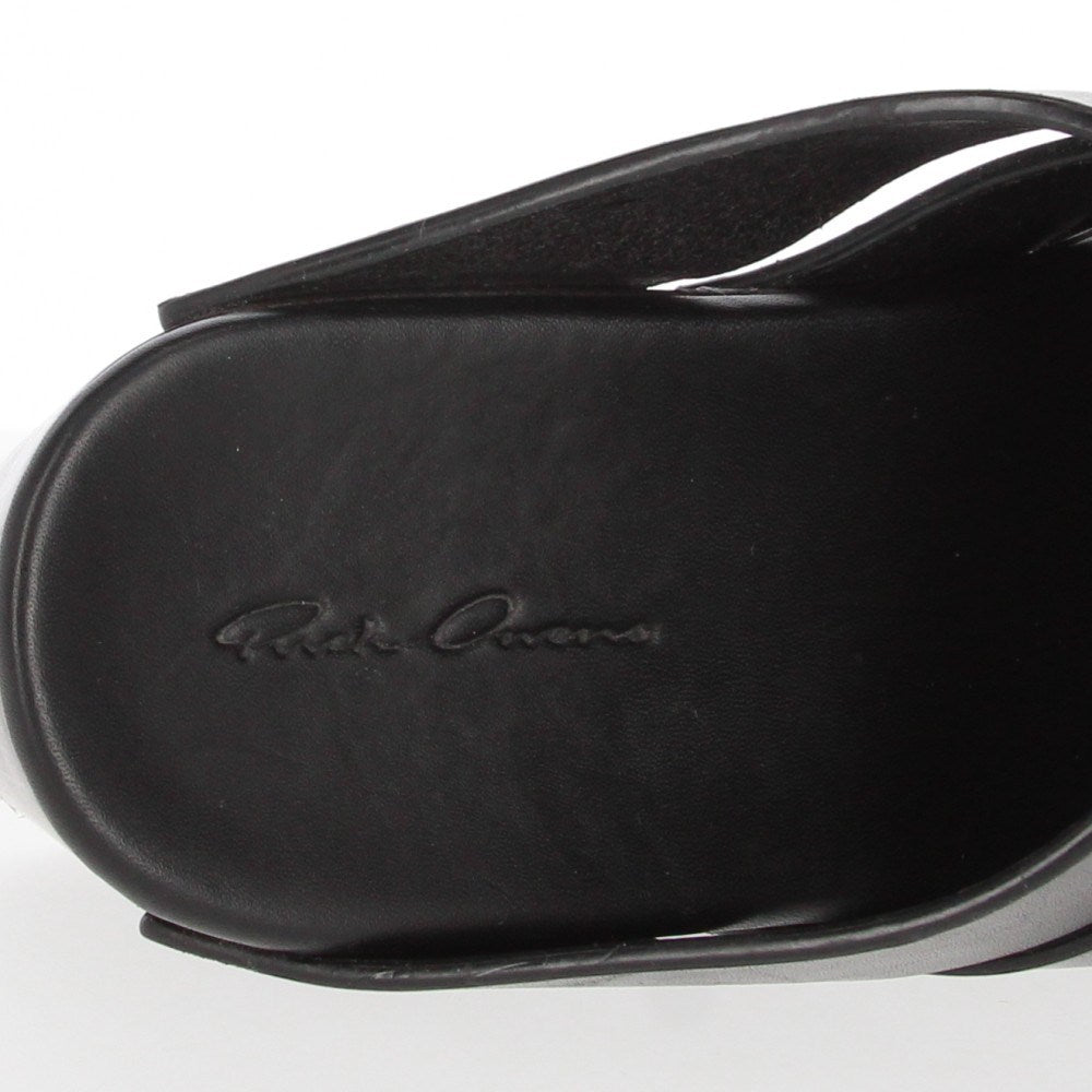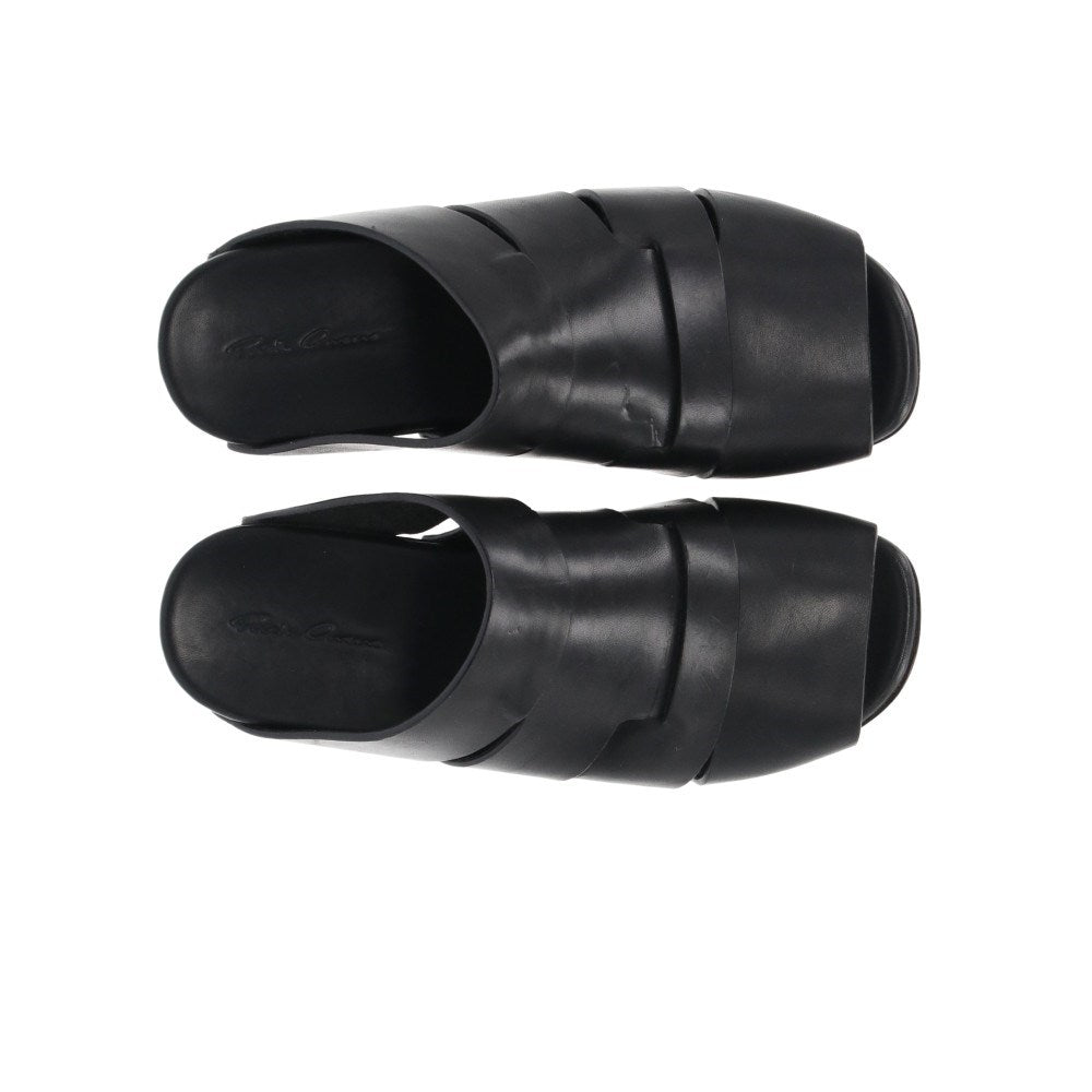 Rick Owens 2010s black wedges. Leather bands and open toe, raised sole and platform.