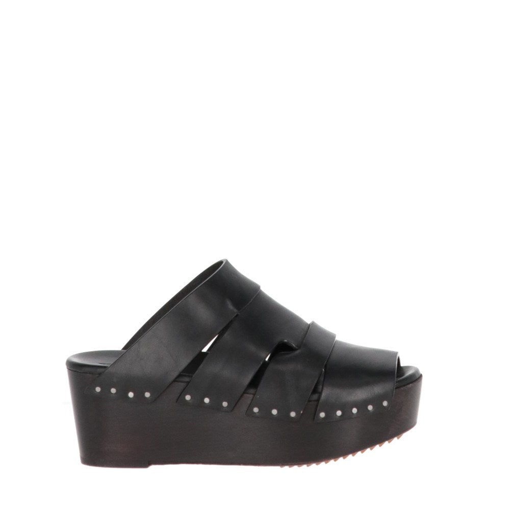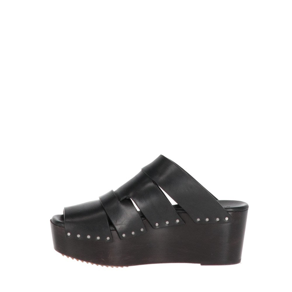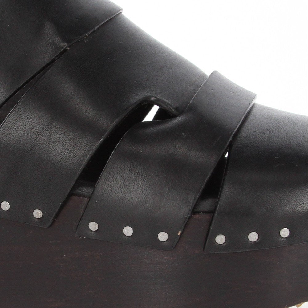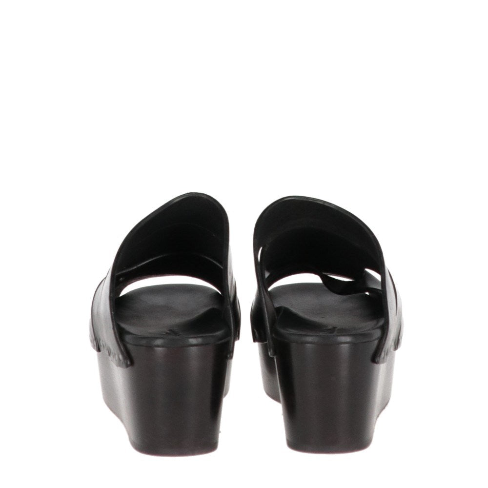 Rick Owens 2010s black wedges. Leather bands and open toe, raised sole and platform.