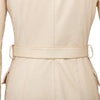Expertly crafted from soft nappa leather, this Roberto Cavalli jacket is the epitome of luxury. In a light beige hue, it features front flap pockets and logo embossed buttons. The buckled belt at the waist provides a flattering, cinched-in silhouette. Experience unparalleled style and quality with this leather jacket.