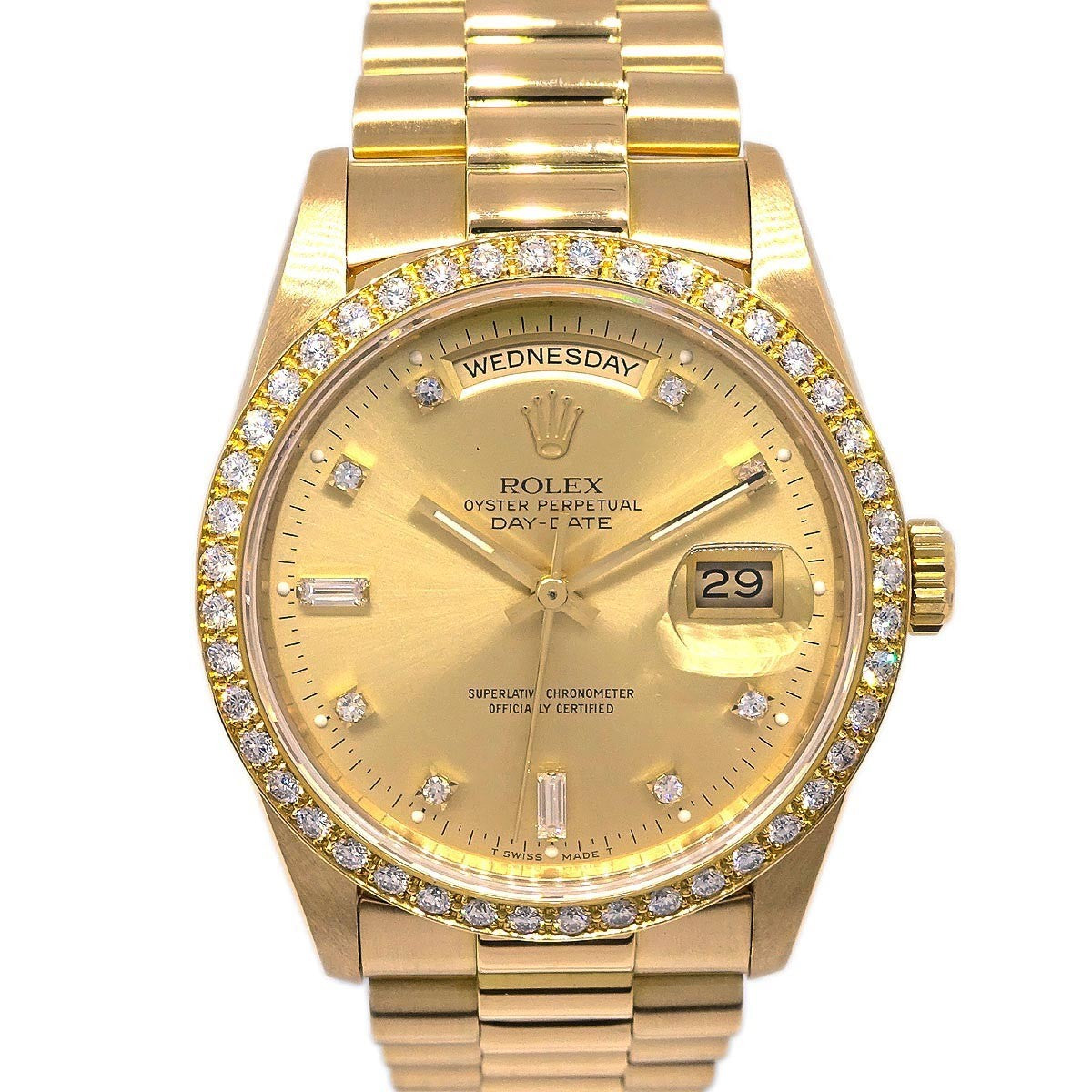 Rolex Oyster Perpetual President Day-Date Automatic Watch Yellow Gold with Diamond Bezel