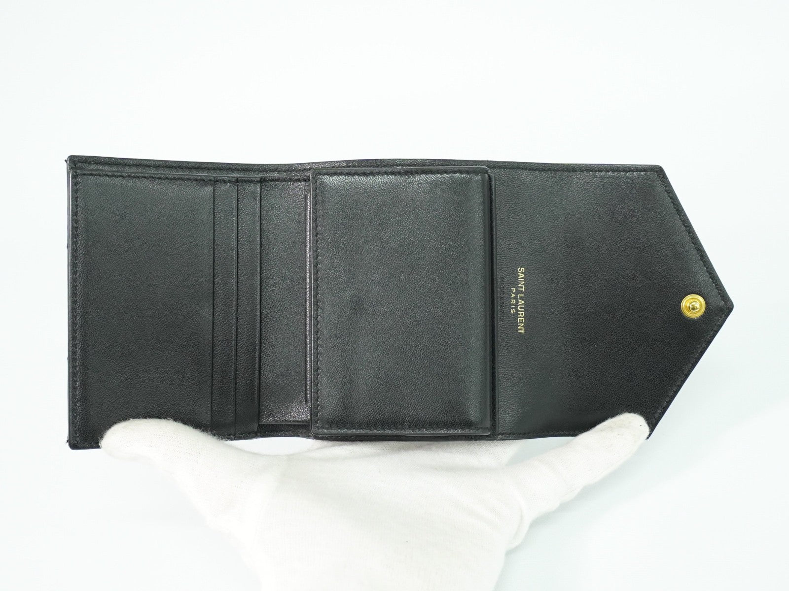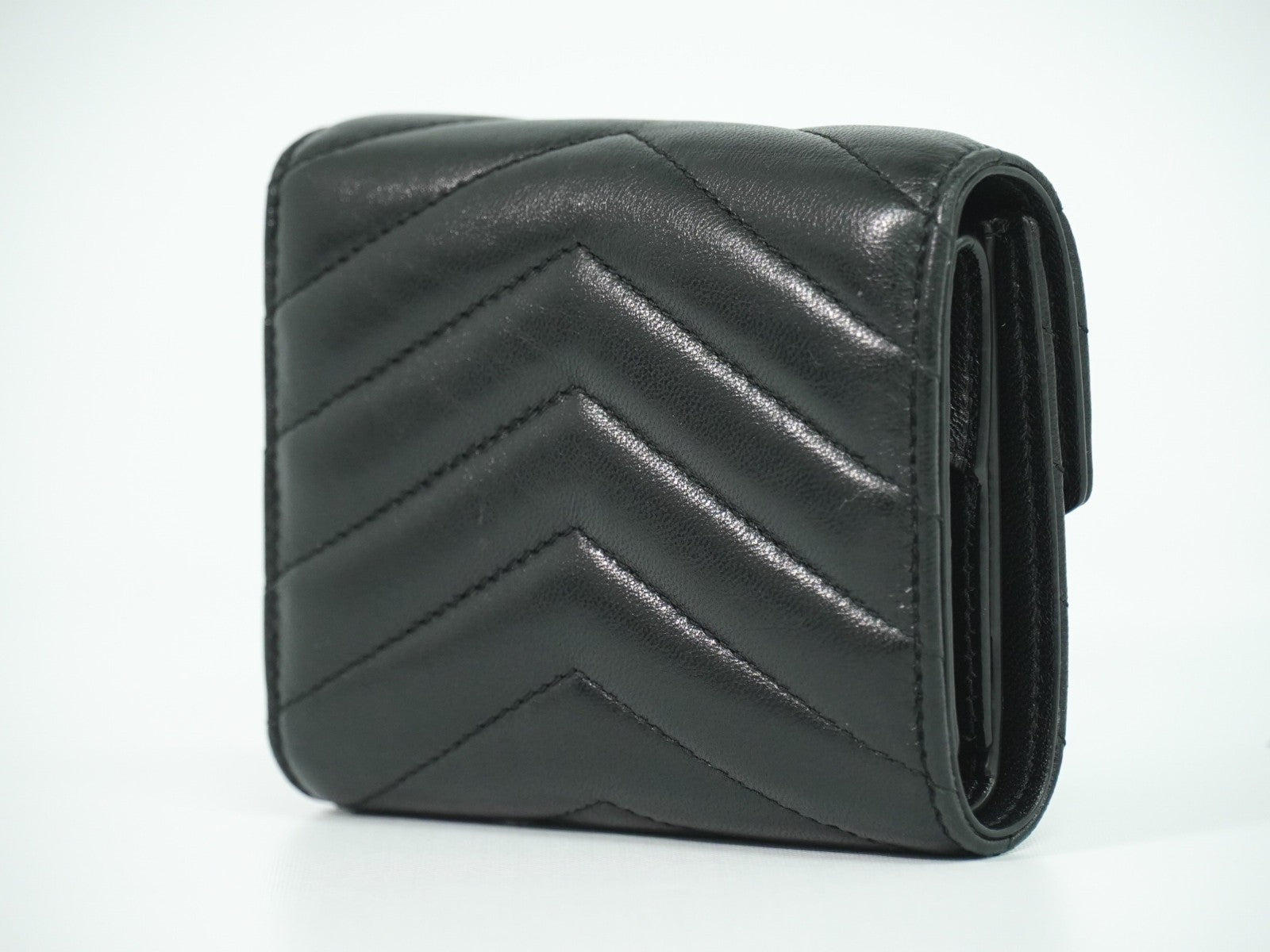 Saint Laurent Classic Monogram Trifold Wallet Matelasse Chevron
