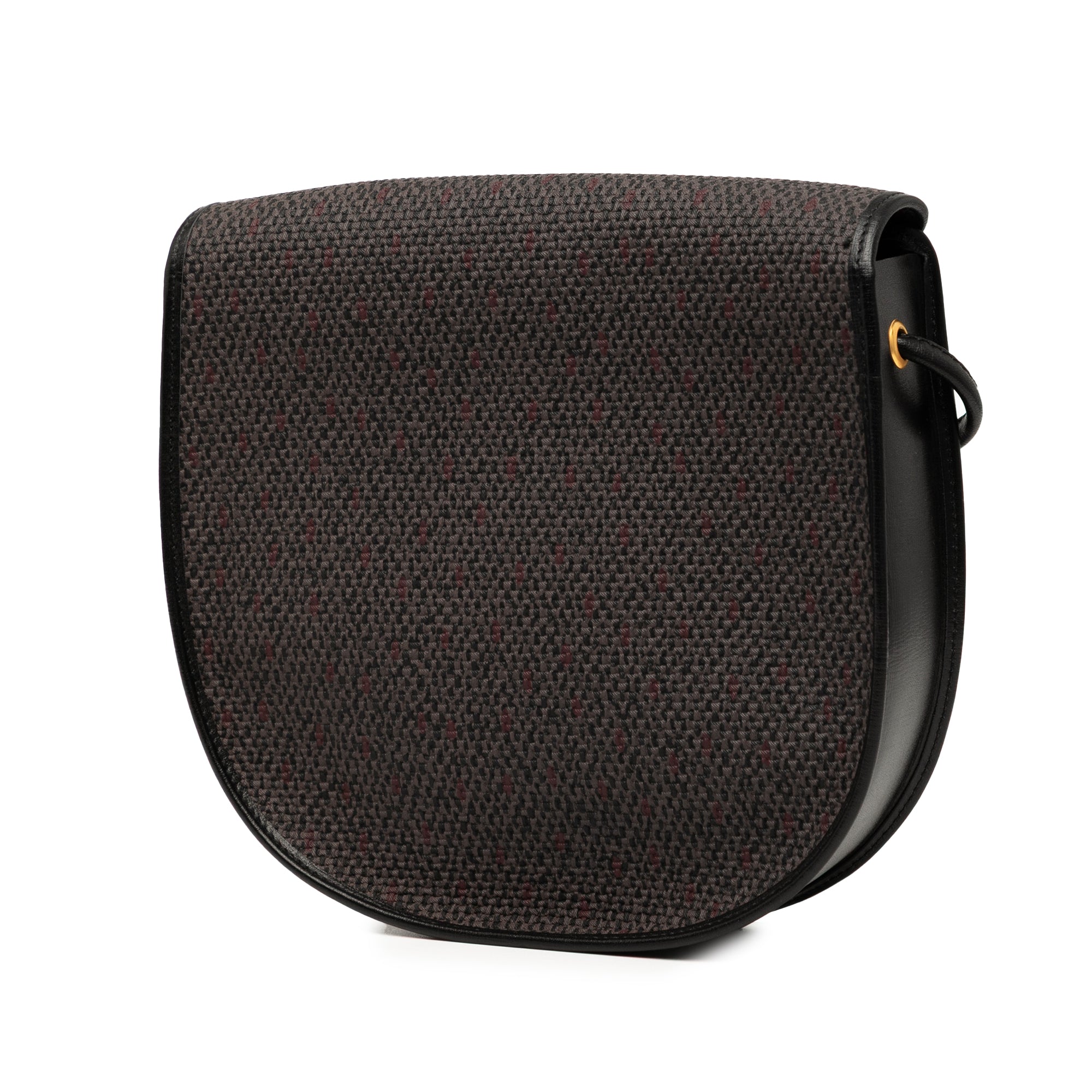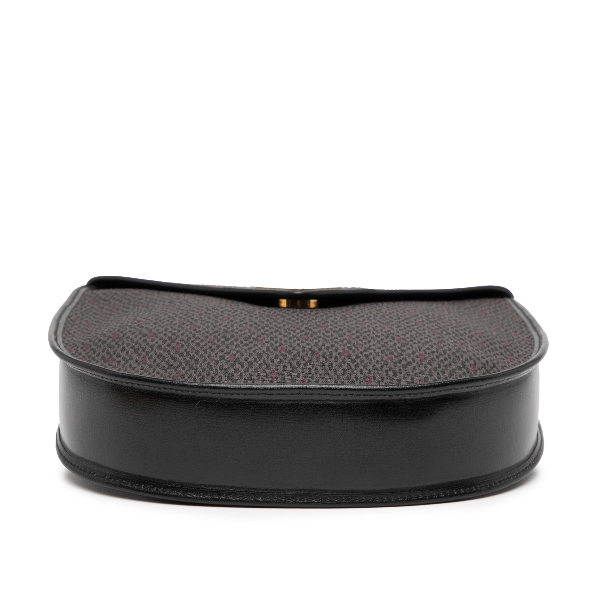 This crossbody bag features a coated canvas body with leather trim, a rolled leather strap, a front flap with a magnetic snap button closure, and an interior zip pocket. Inclusion: Dust bag. Retail Price: 995.00