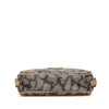 This crossbody bag features a coated canvas body with leather trim, a flat leather strap, a top zip closure, and an interior zip pocket. Retail Price: 500.00