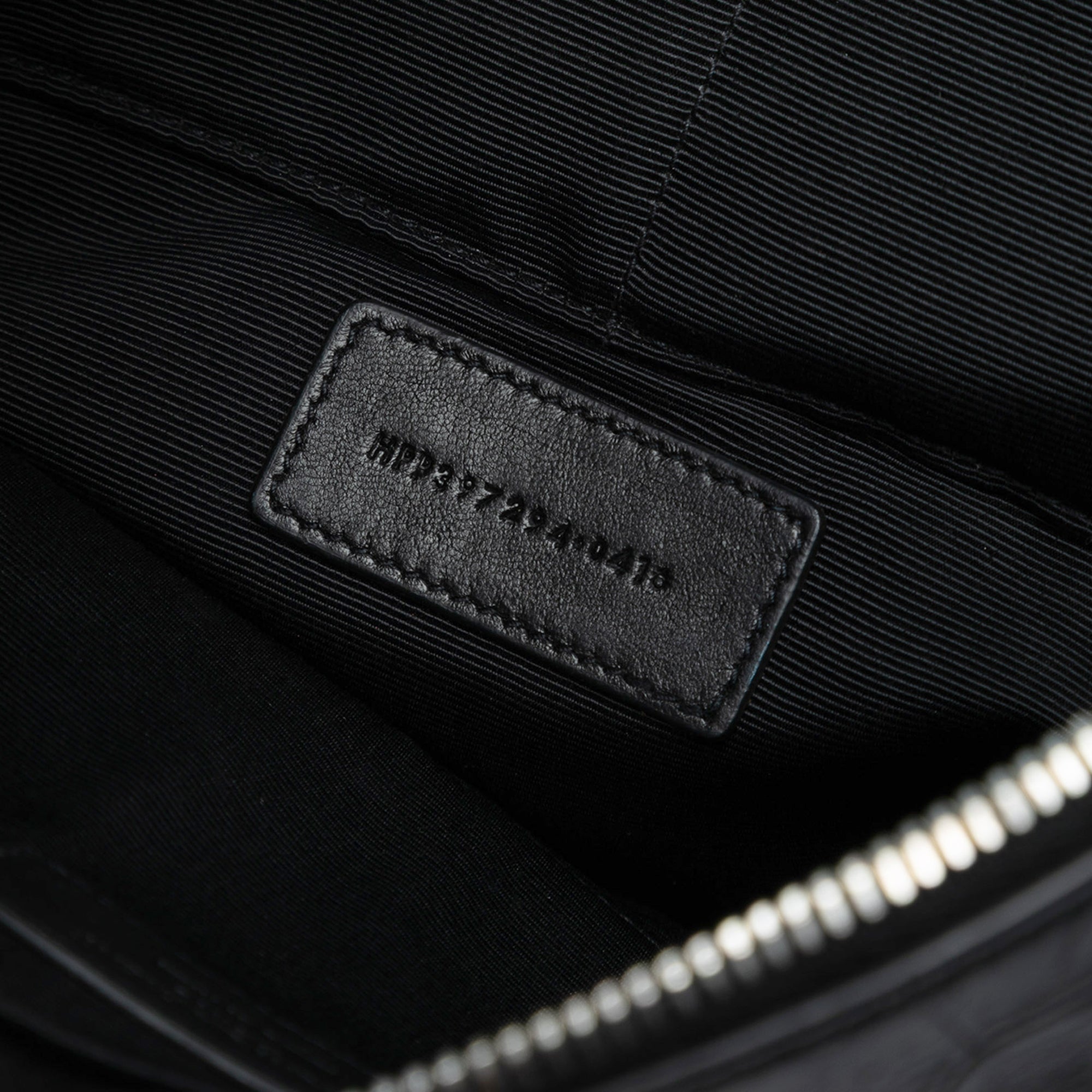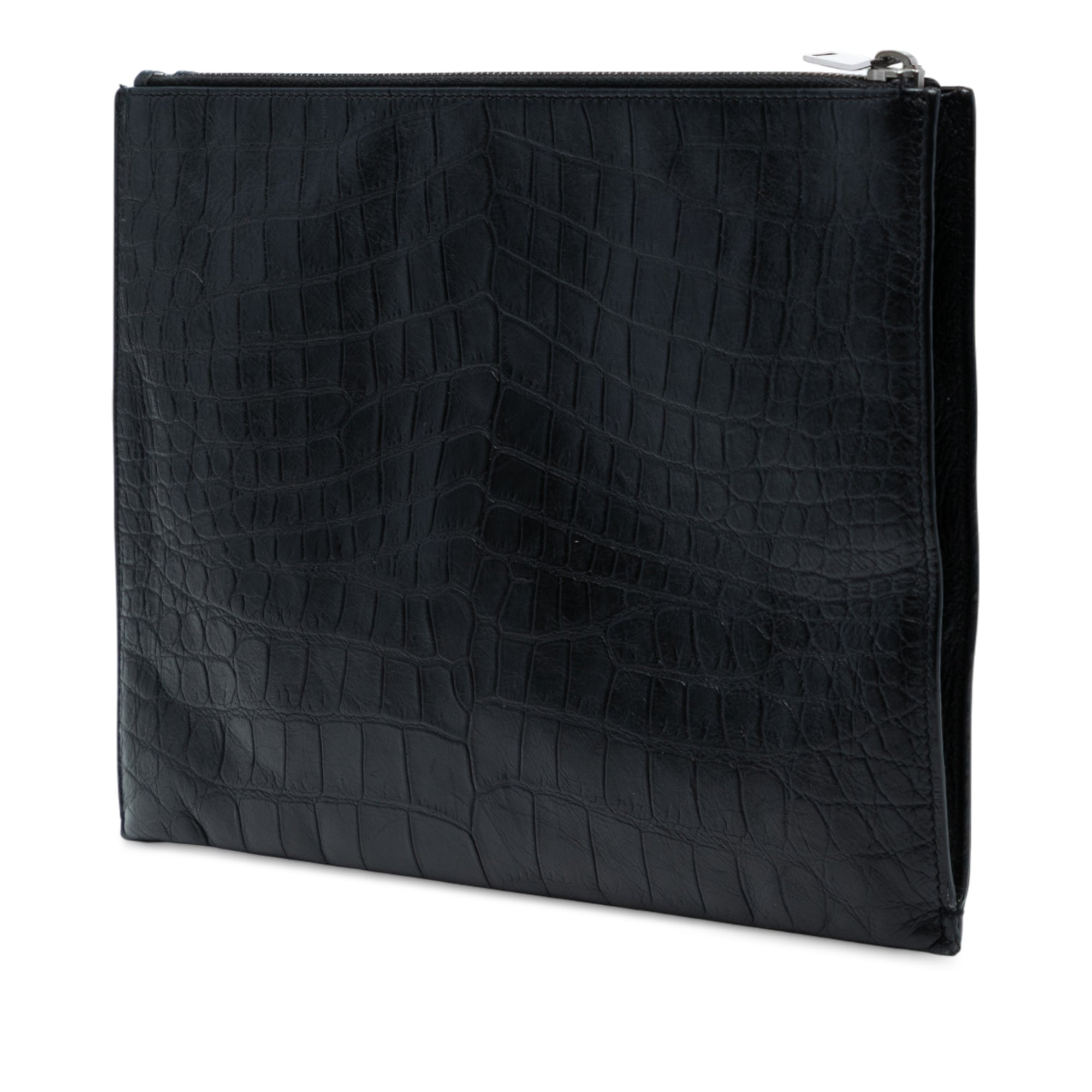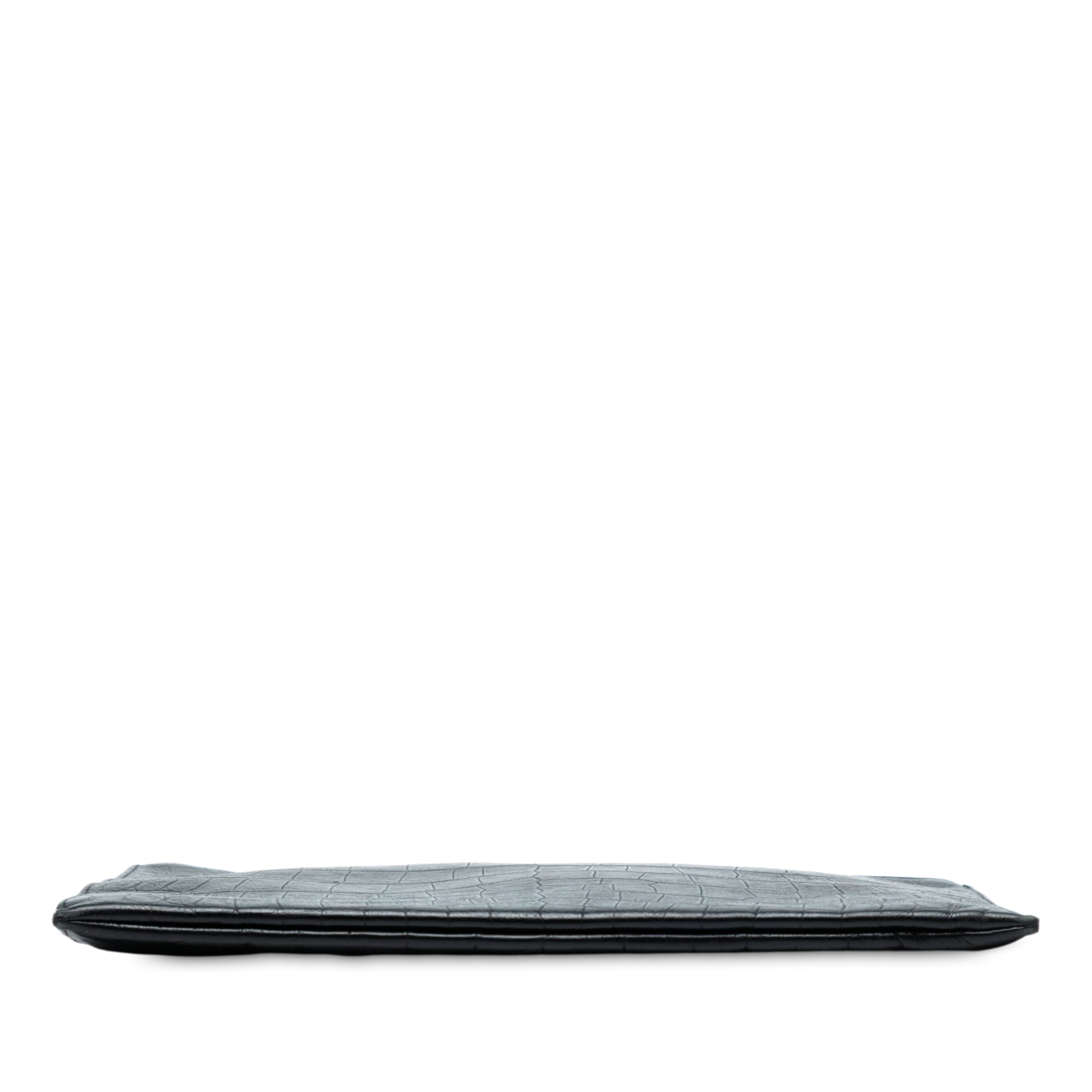 This clutch features an embossed leather body, a top zip closure, and interior slip pockets. Retail Price: 825.00