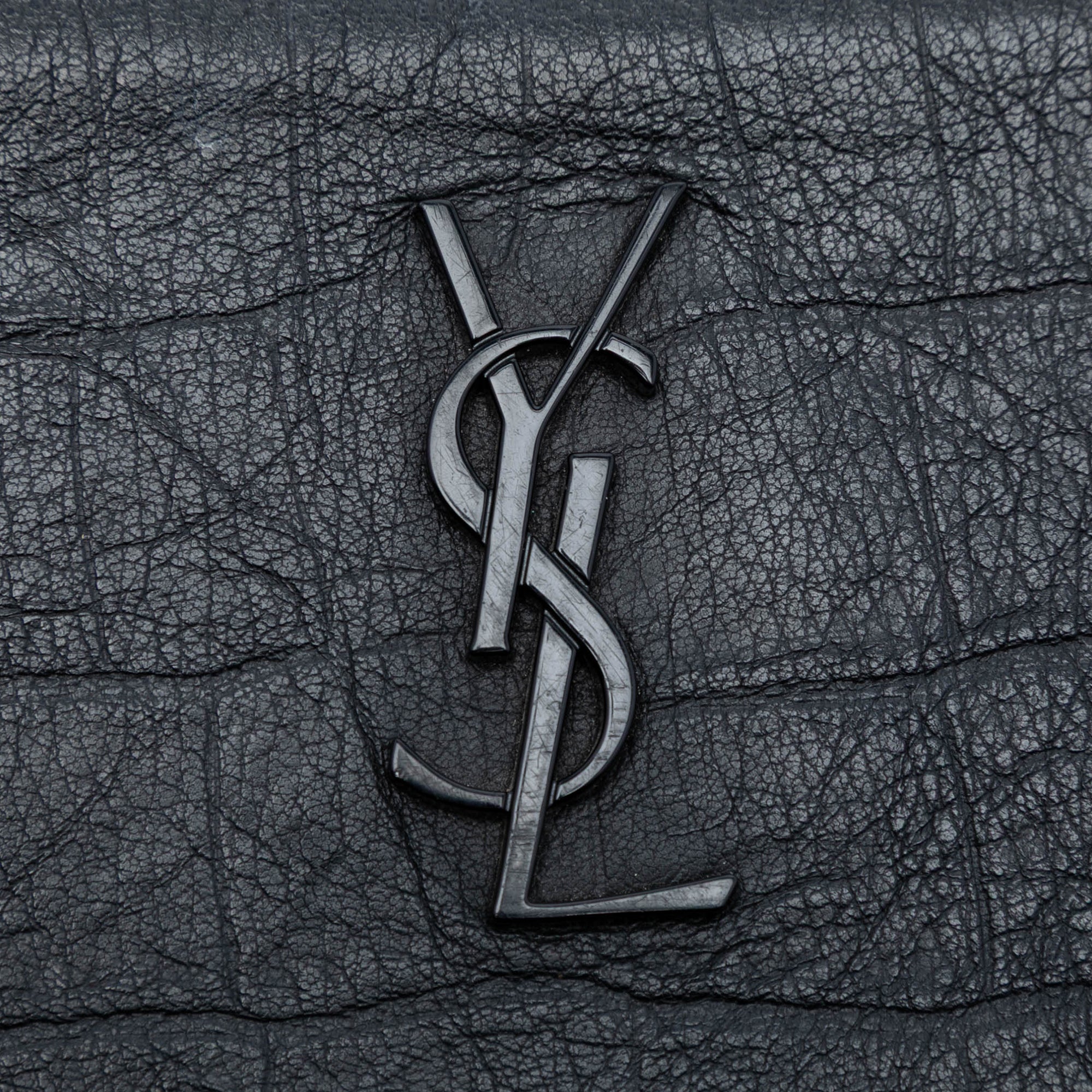 Saint Laurent Croc Embossed Leather Monogram Clutch