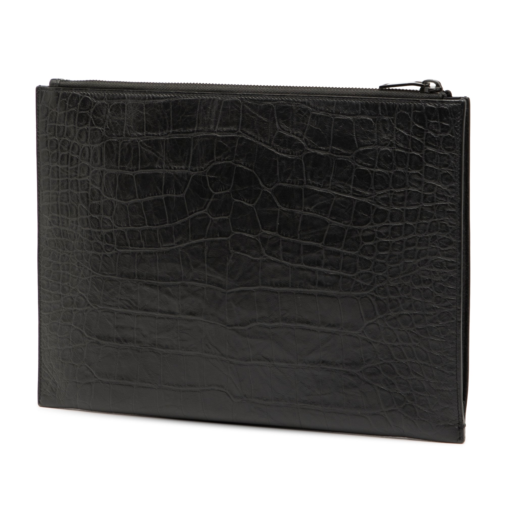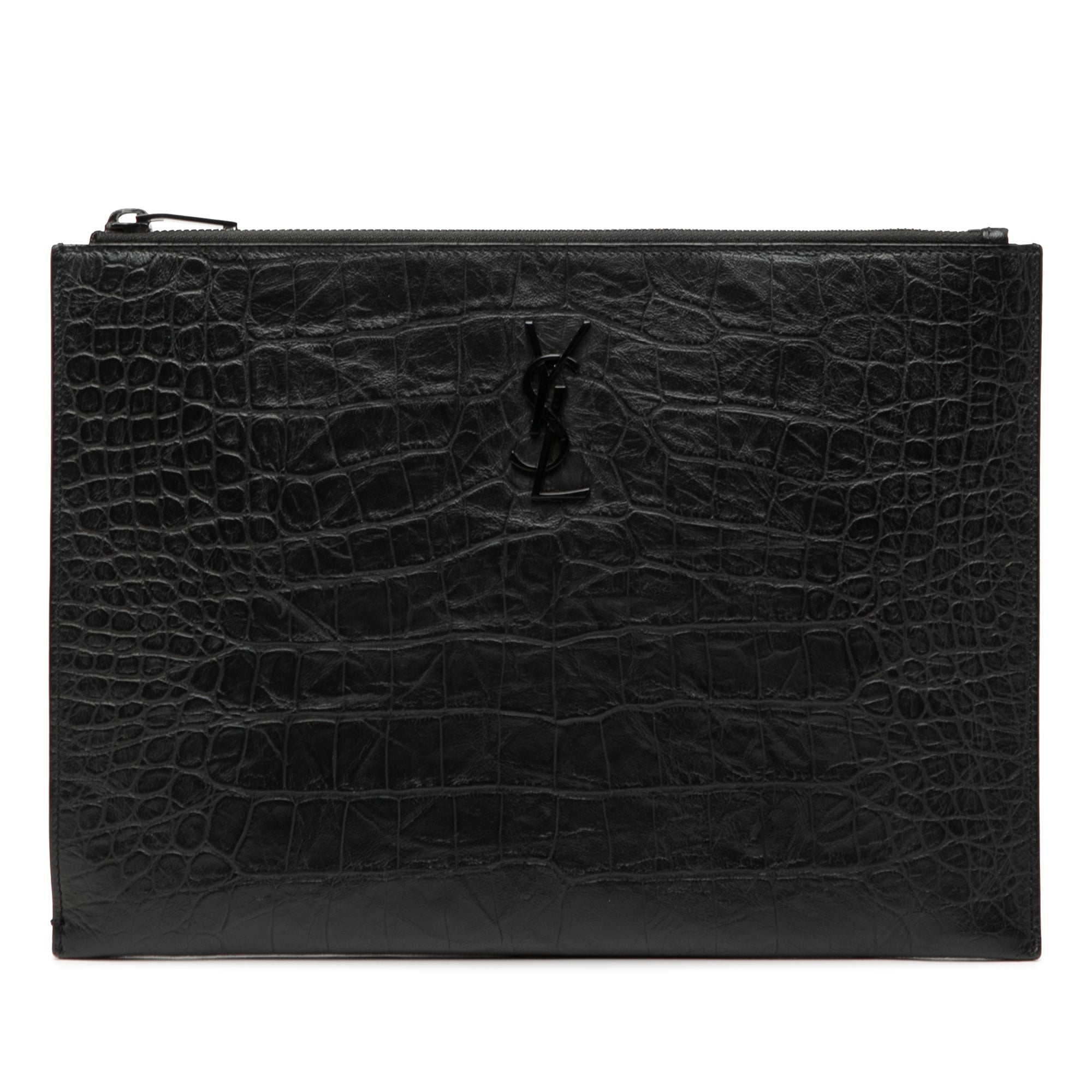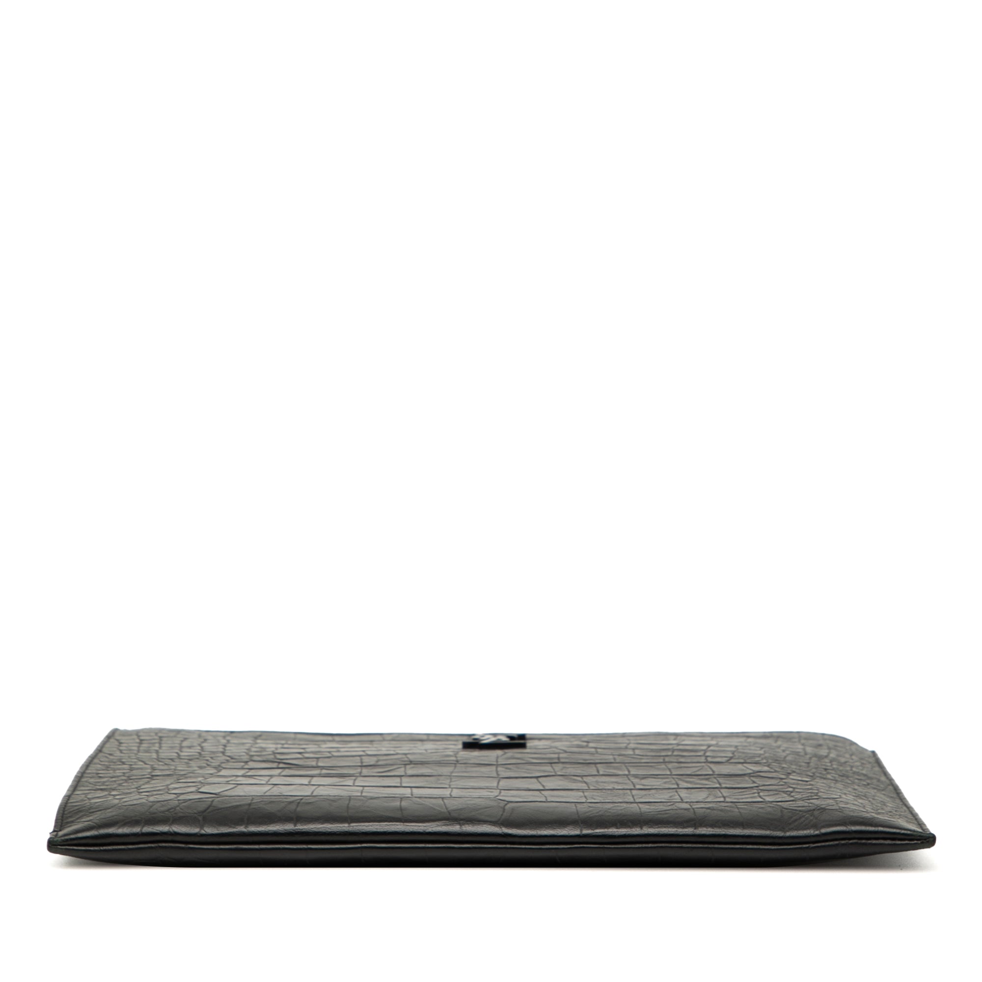 Saint Laurent Croc Embossed Leather Monogram iPad Case